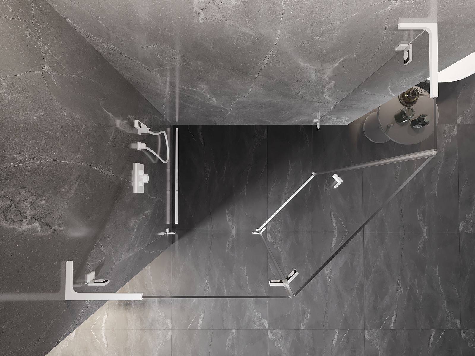 Mexen Lunar L cabine de douche pentagonale pivotante gauche 90 x 80 cm, transparent, blanc - 831L-090L-080P-20-00-L