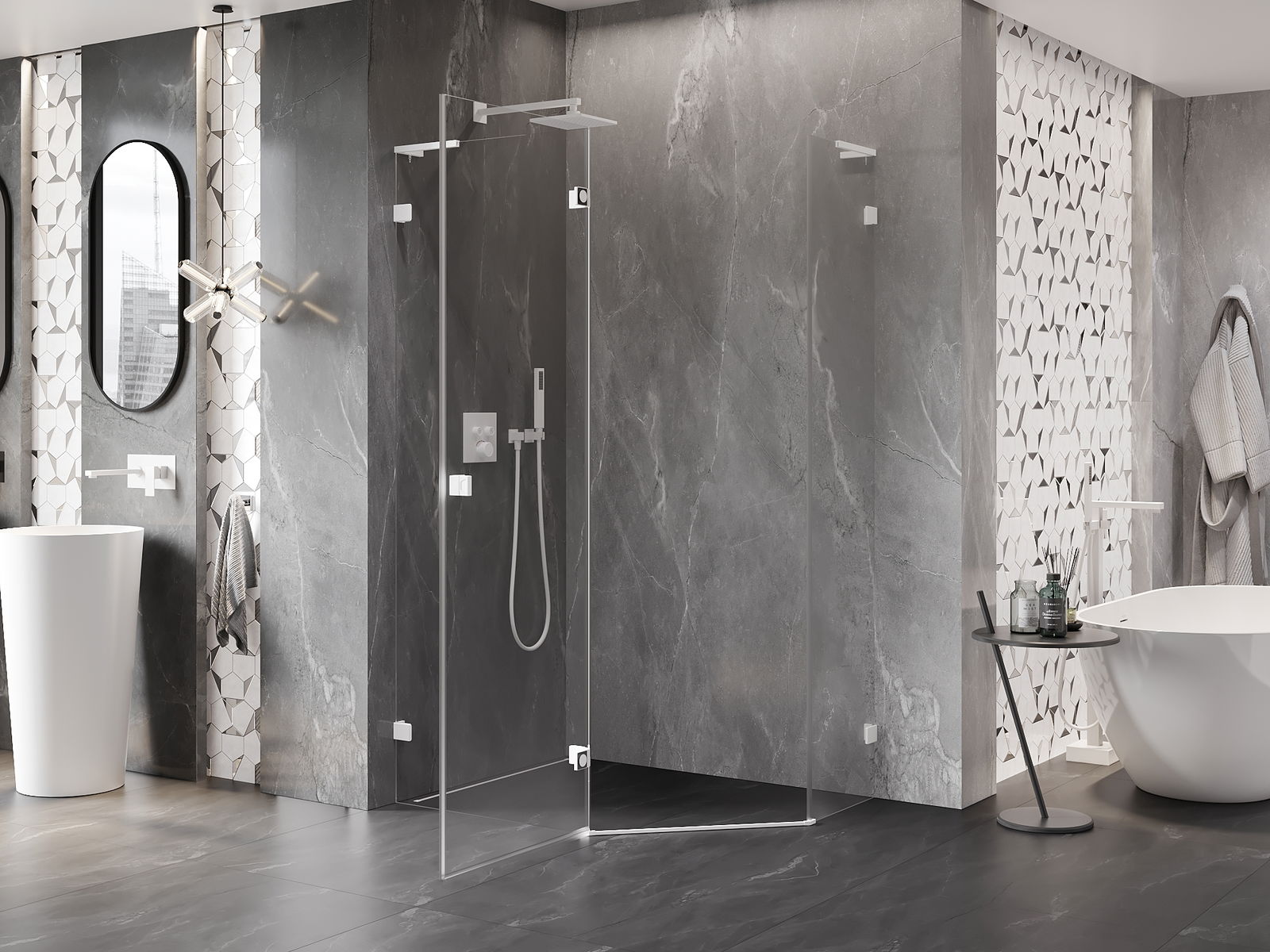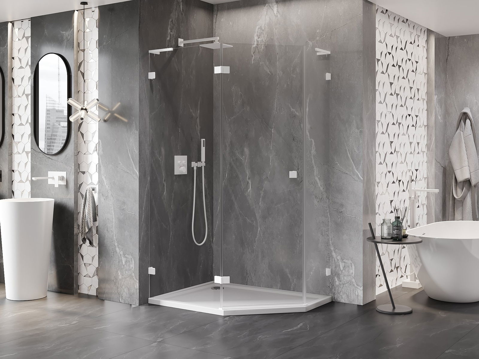 Mexen Lunar L cabine de douche pentagonale pivotante gauche 100 x 90 cm, transparent, blanc - 831L-100L-090P-20-00-L
