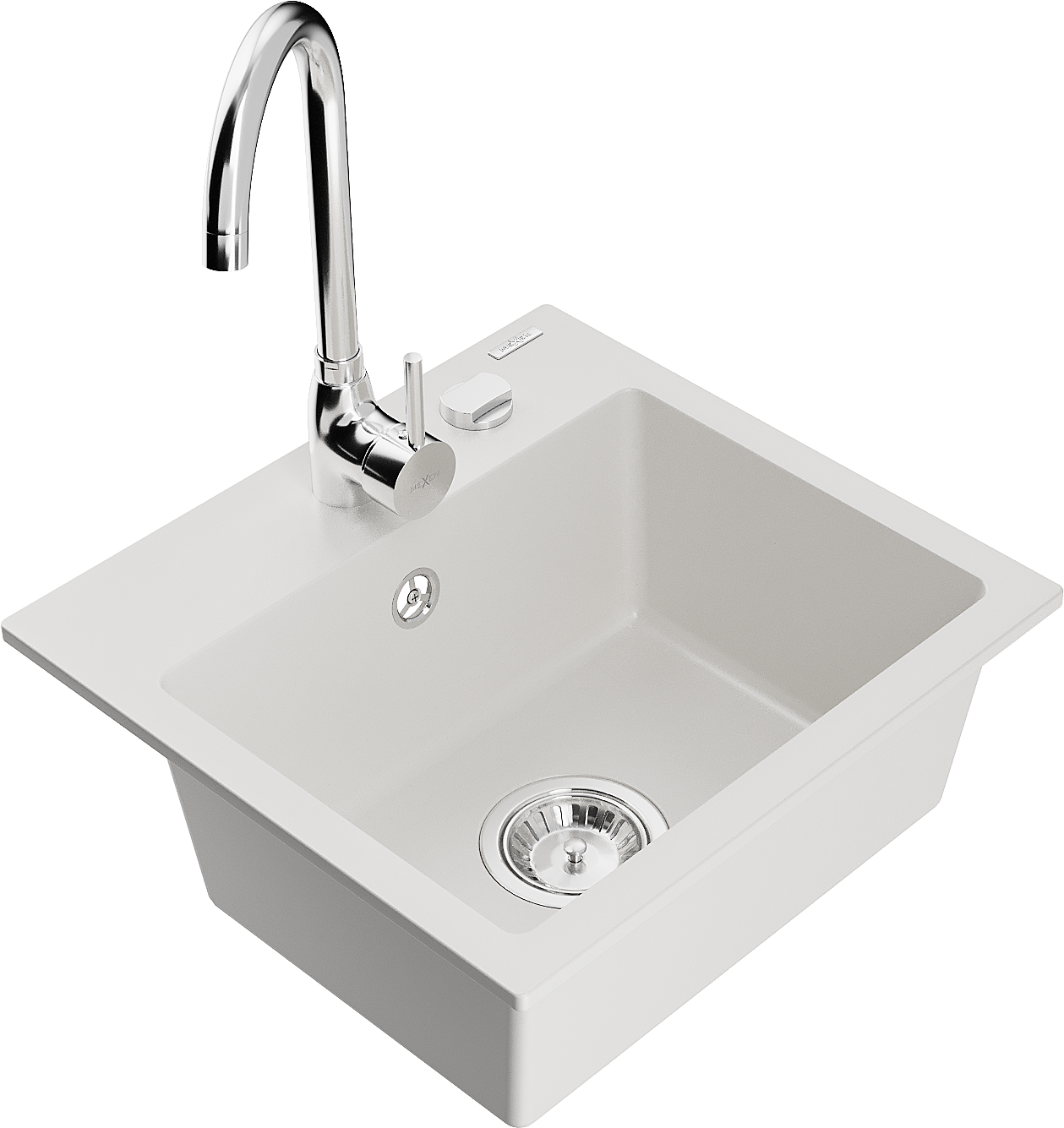 Mexen Milo évier en granit à 1 bac avec robinet de cuisine Telma, blanc - 6505-20-670200-00