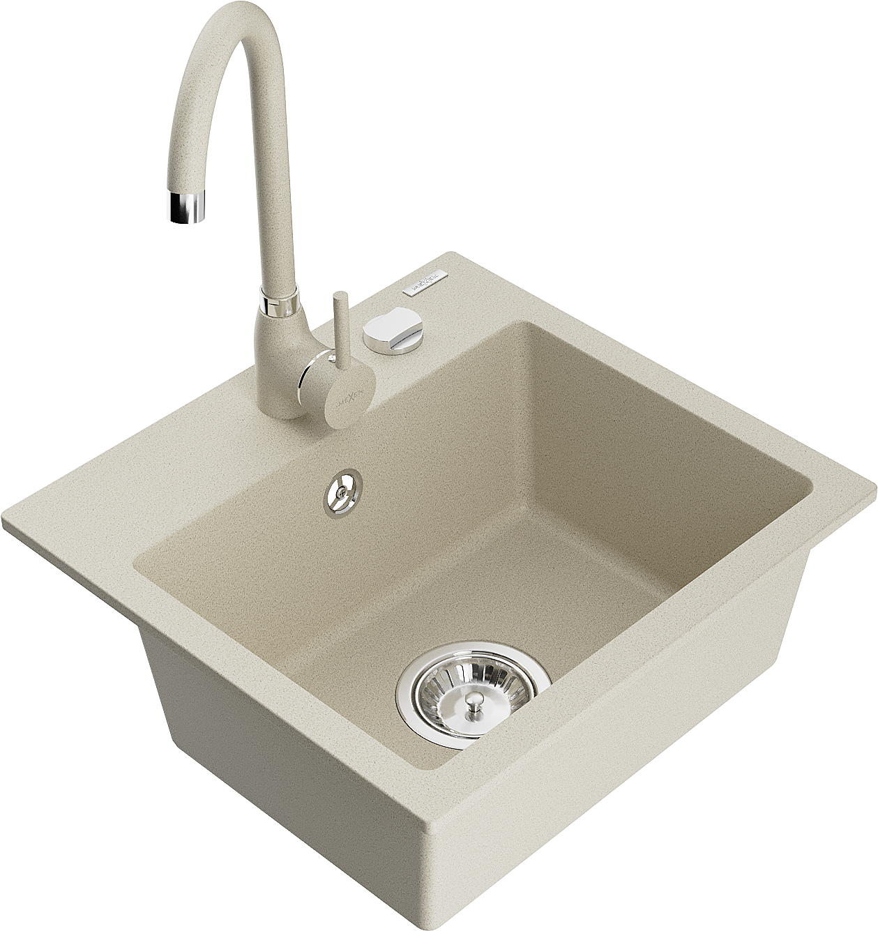 Mexen Milo évier de cuisine en granit 1-bac avec robinet de cuisine Telma, beige - 6505-69-670200-69