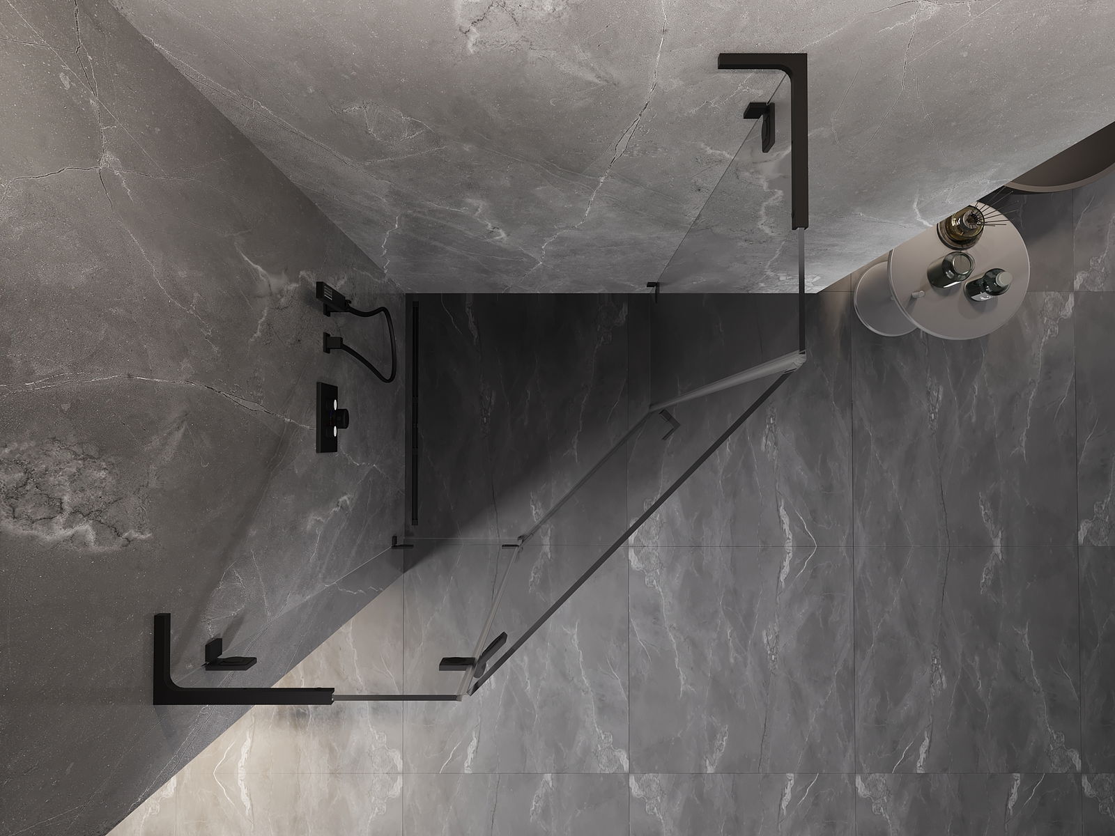 Mexen Lunar L cabine de douche pentagonale pivotante gauche 80 x 80 cm, transparent, noir - 831L-080L-080P-70-00-L