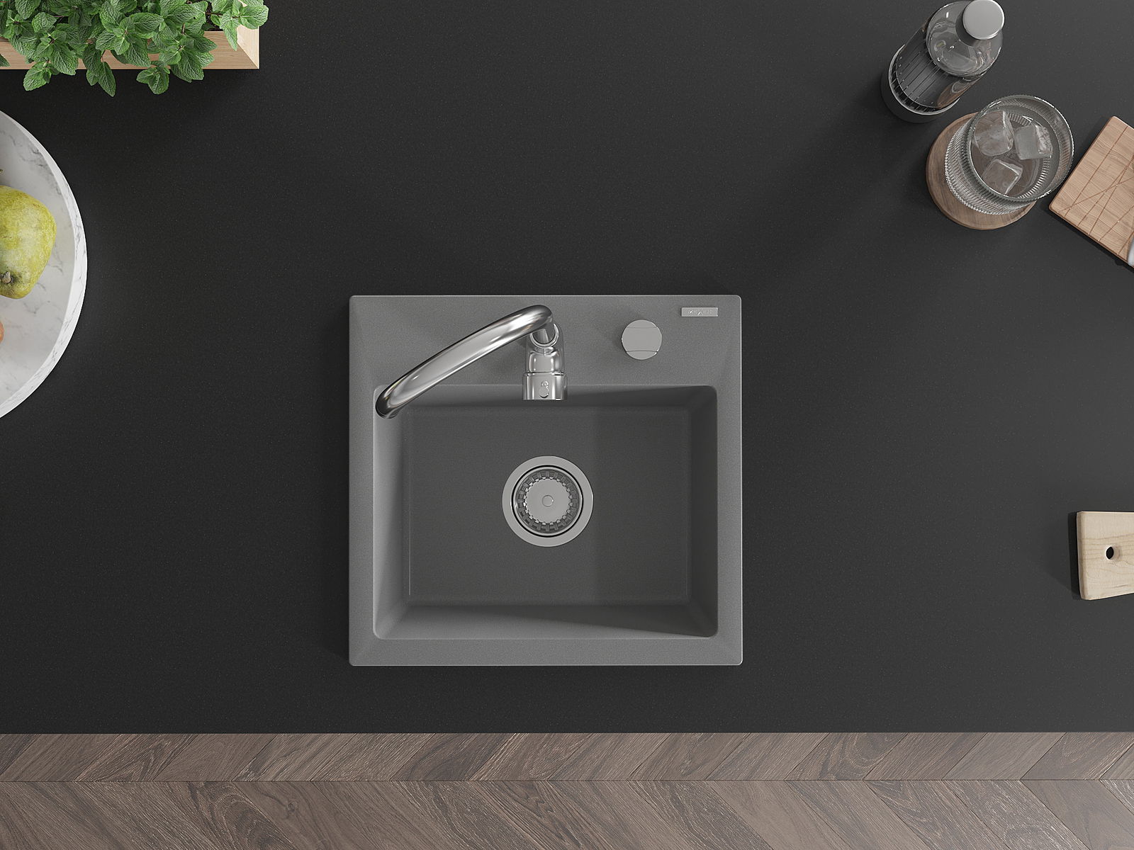 Mexen Milo évier en granit 1 bac avec robinet de cuisine Telma, gris - 6505-71-670200-00