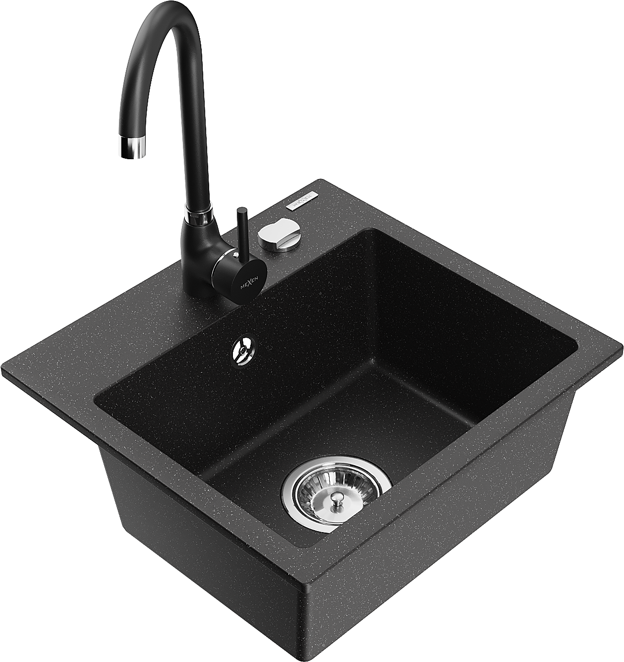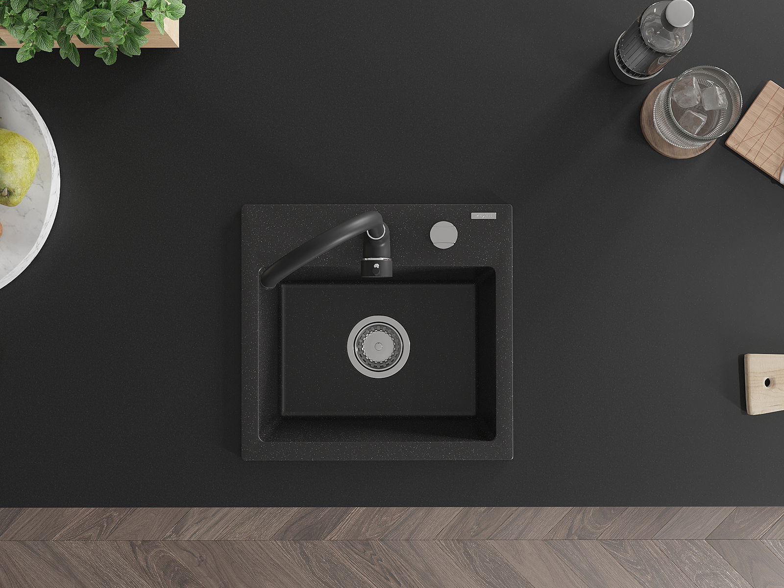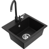 Mexen Milo évier en granit à 1 bac avec robinet de cuisine Telma, noir/argent - 6505-73-670200-70