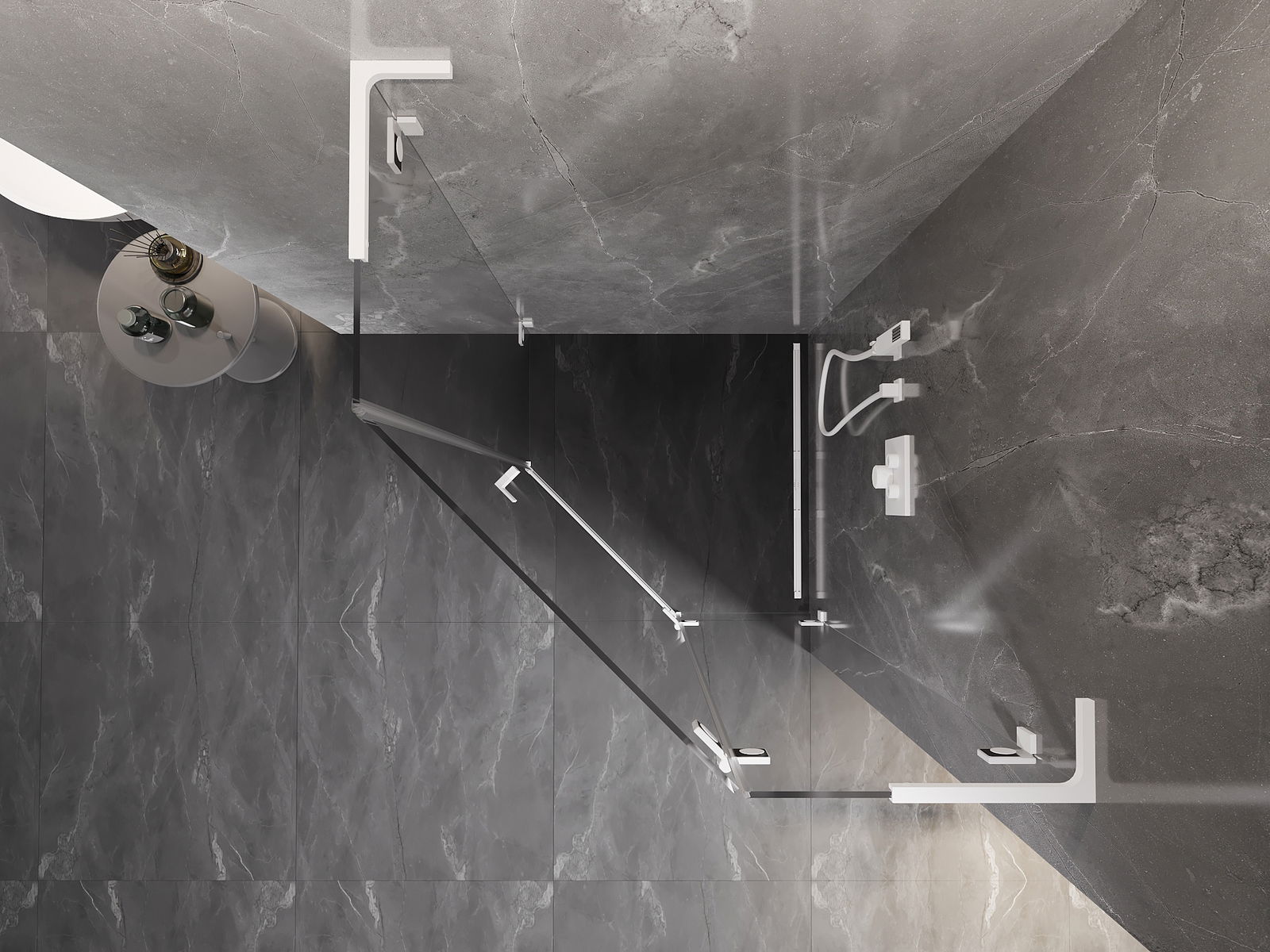 Mexen Lunar L cabine de douche pentagonale pivotante droite 80 x 80 cm, transparente, blanche - 831L-080P-080L-20-00-P