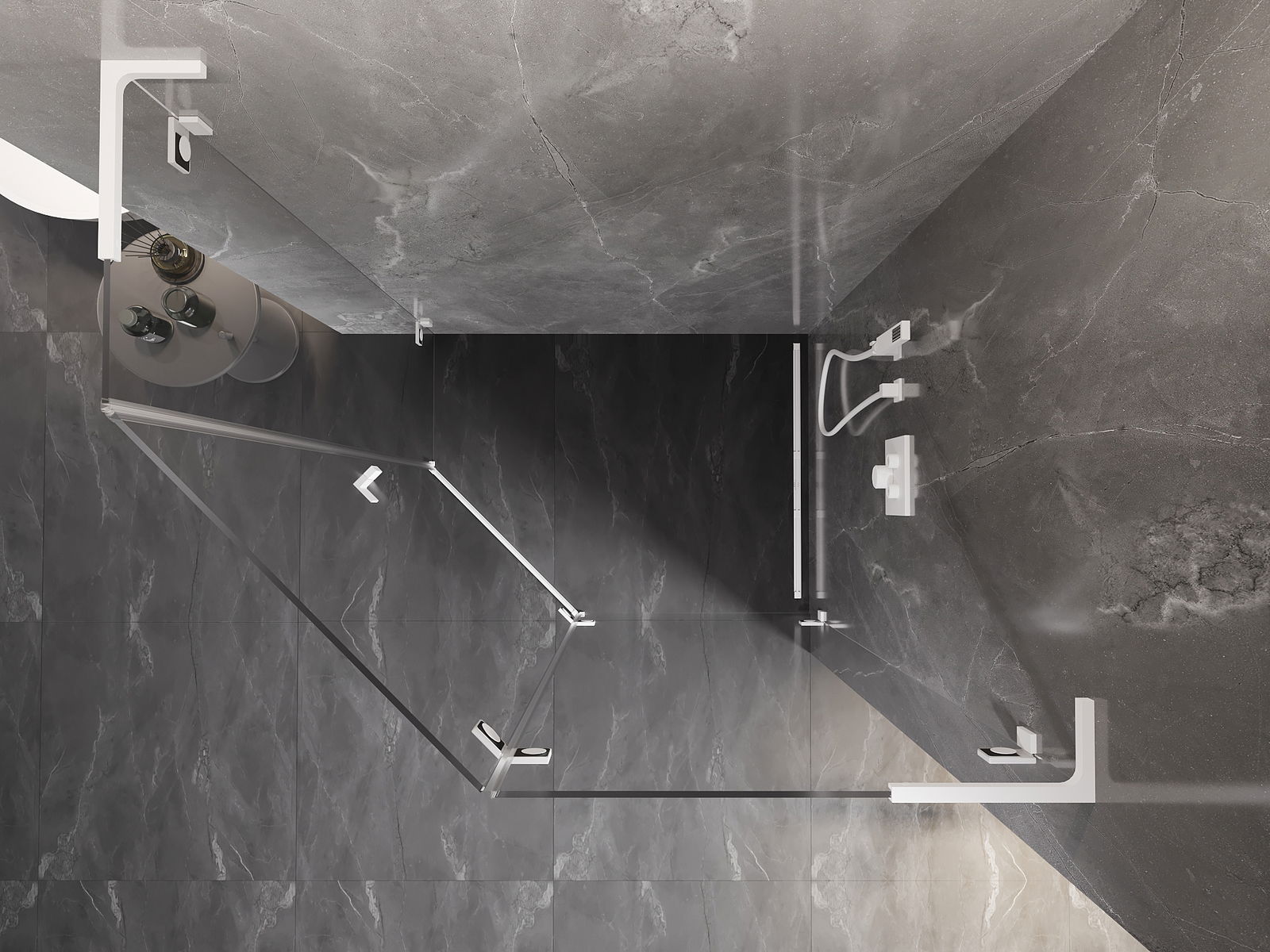 Mexen Lunar L cabine de douche pentagonale à charnière droite 100 x 90 cm, transparent, blanc - 831L-100P-090L-20-00-P