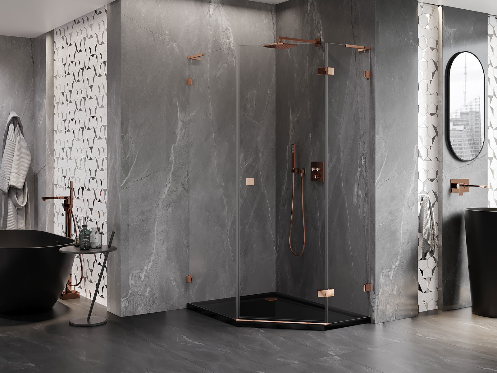 Mexen Lunar L cabine de douche pentagonale battante droite 80 x 100 cm, transparent, or rose - 831L-080P-100L-60-00-P