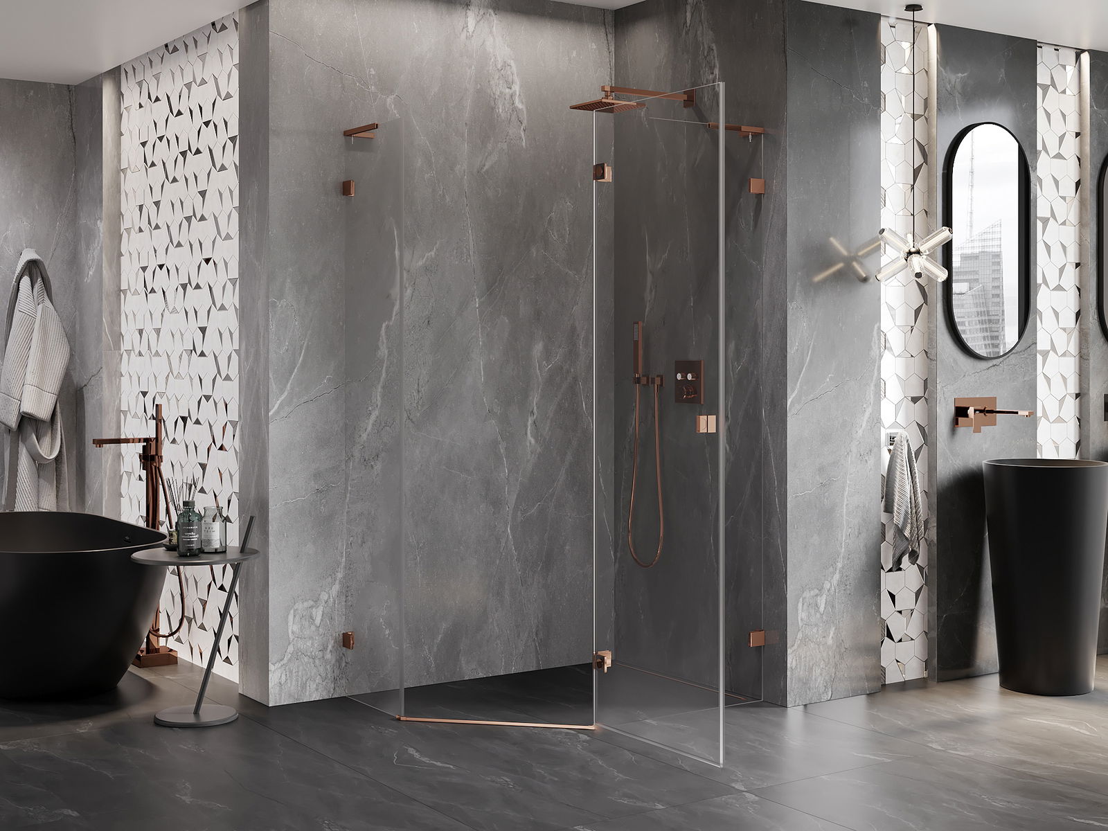 Les pinces et les charnières sont fabriquées en laiton très durable et forment en plus une surface de verre affleurante. C'est un excellent choix qui allie élégance, durabilité et design moderne. Grâce à ces solutions, la douche gagne en esthétique, tout en facilitant le maintien de la propreté.