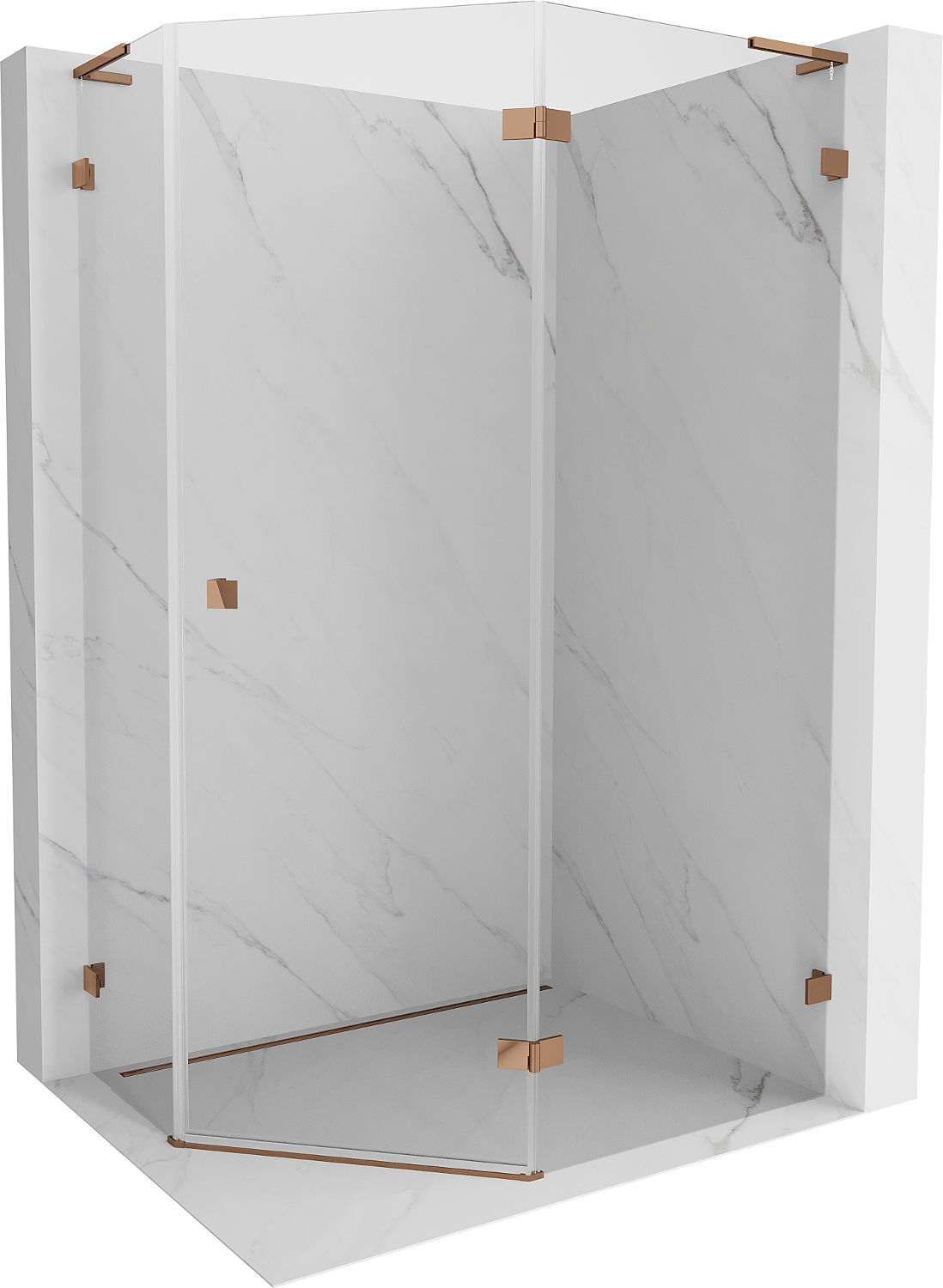 Mexen Lunar L cabine de douche pentagonale pivotante droite 100 x 90 cm, transparent, or rose - 831L-100P-090L-60-00-P