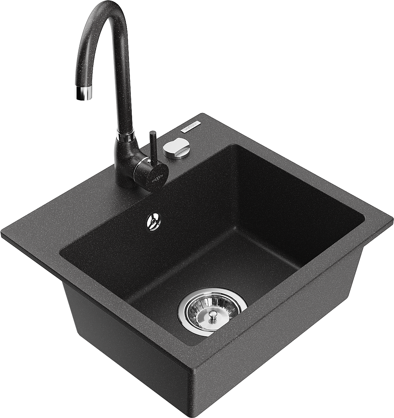 Mexen Milo évier de cuisine en granit à 1 bac avec robinet Telma, noir moucheté - 6505-76-670200-76