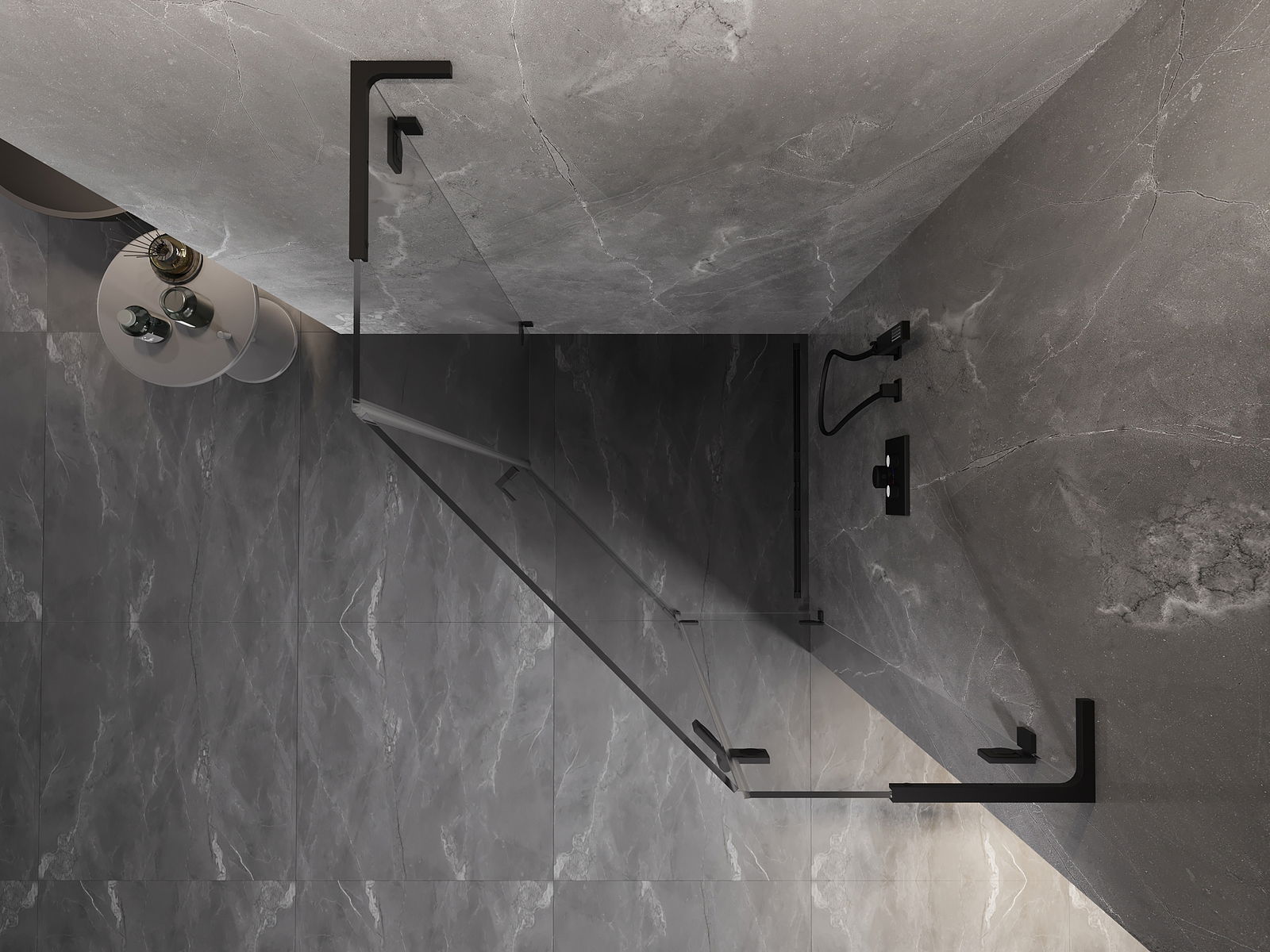 Mexen Lunar L cabine de douche pentagonale pivotante à droite 80 x 80 cm, transparent, noir - 831L-080P-080L-70-00-P