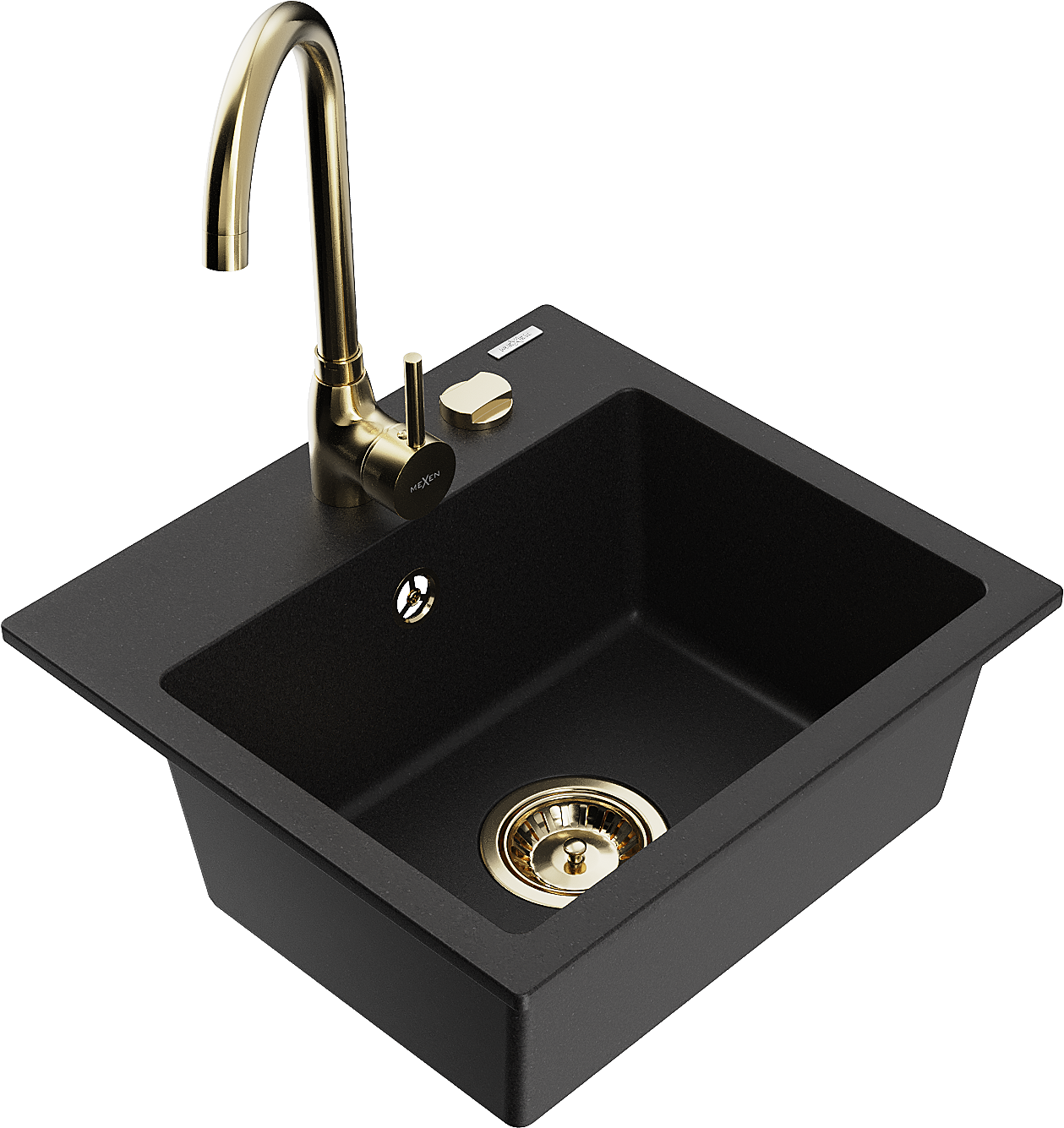 Mexen Milo évier en granit 1 bac avec robinet de cuisine Telma, noir - 6505-77-670200-50