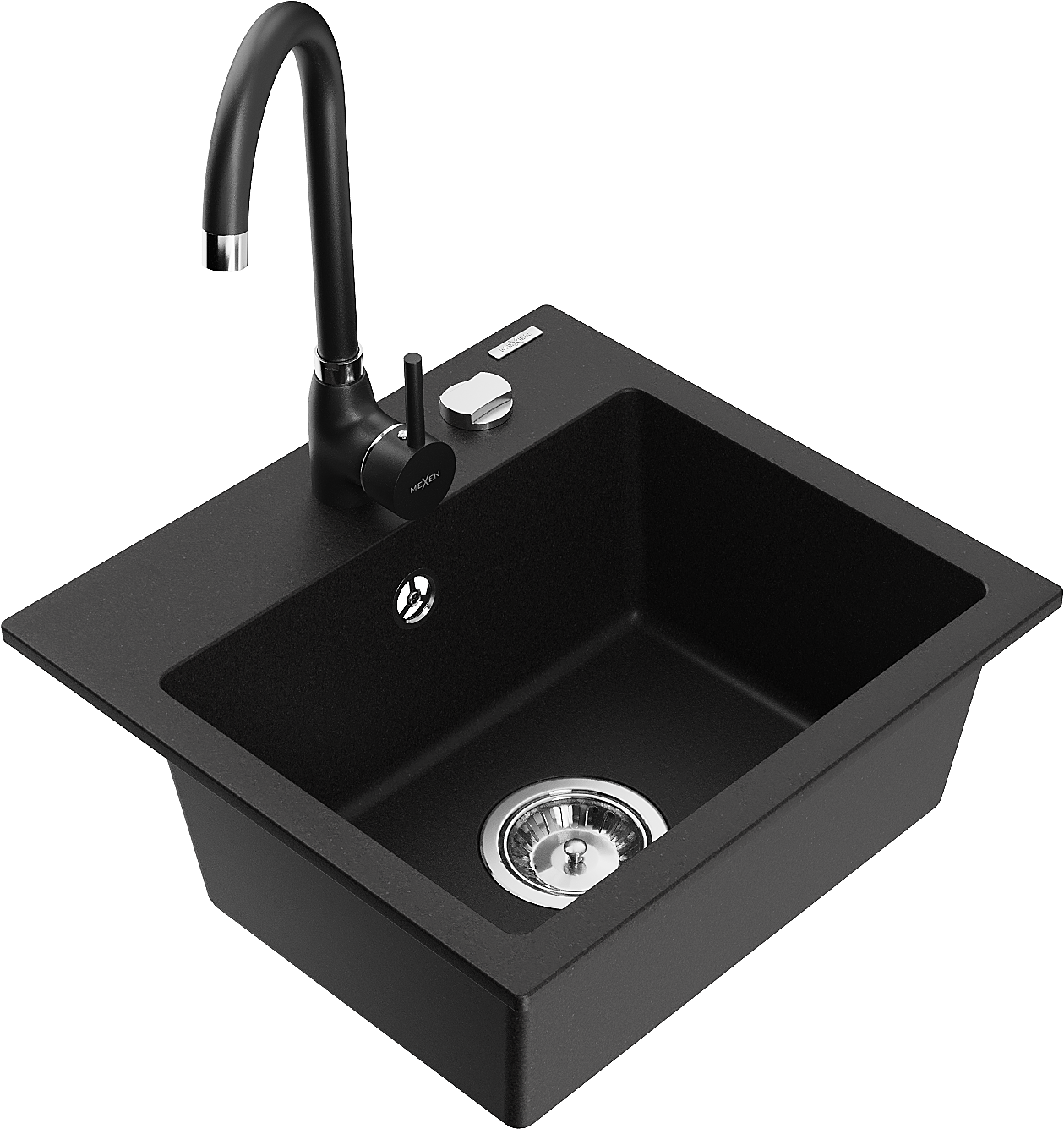 Mexen Milo évier en granit 1 bac avec robinet de cuisine Telma, noir - 6505-77-670200-70