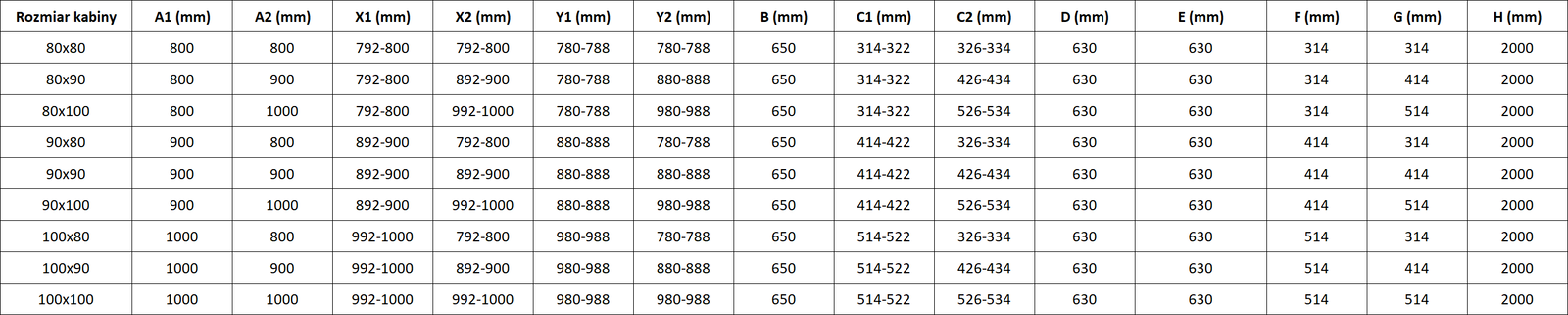 Taille : 100x80 cm (porte droite 100 cm, paroi 80 cm)