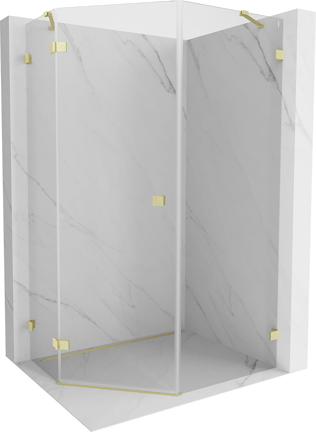 Mexen Lunar cabine de douche pentagonale pivotante gauche 80 x 90 cm, transparent, or brossé - 831-080L-090P-55-00-L