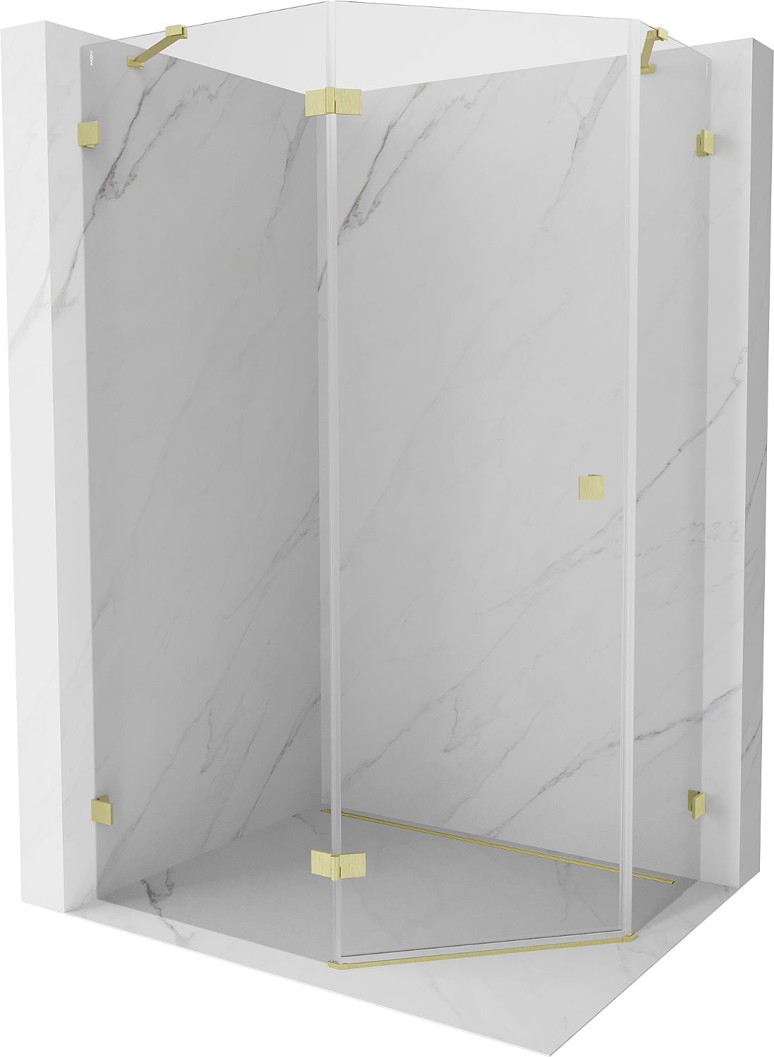 Mexen Lunar cabine de douche pentagonale avec porte pivotante gauche 90 x 80 cm, transparent, or brossé - 831-090L-080P-55-00-L