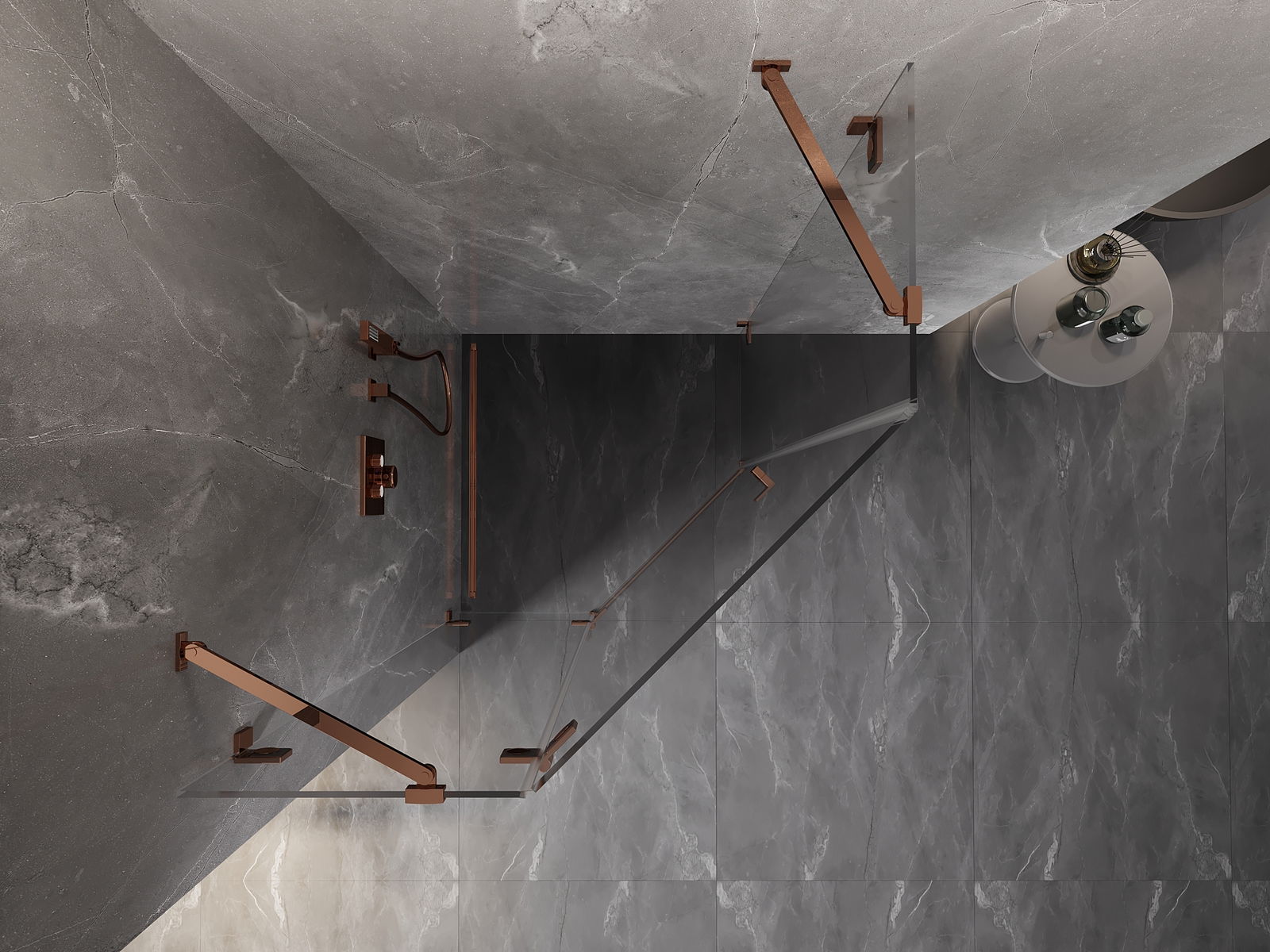 Mexen Lunar cabine de douche pentagonale pivotante gauche 80 x 80 cm, transparent, or rose - 831-080L-080P-60-00-L