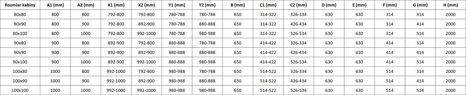 Taille: 80x80 cm (porte gauche 80 cm, paroi 80 cm)