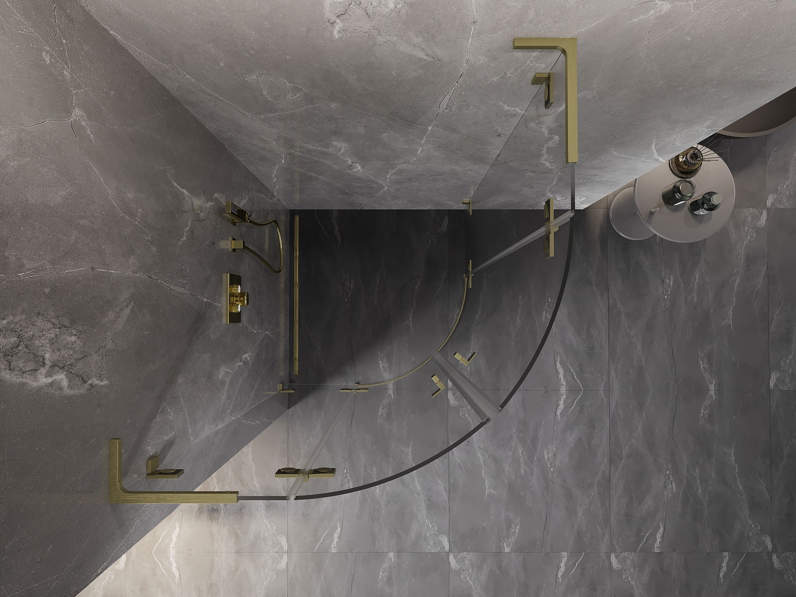 Mexen Lunar L cabine de douche demi-circulaire pivotante 70 x 70 cm, transparent, or brossé - 833L-070L-070P-55-00