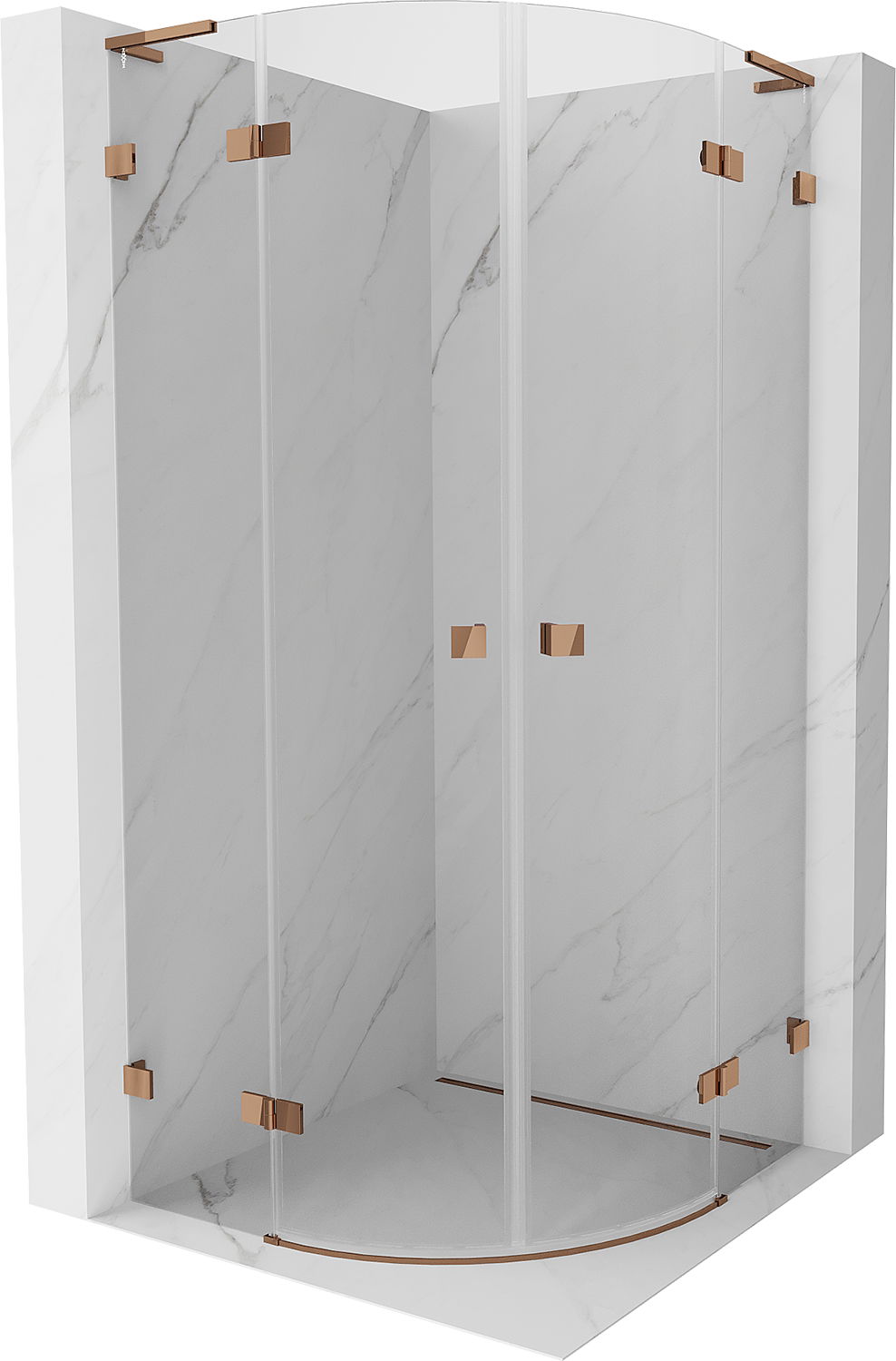 Mexen Lunar L cabine de douche demi-ronde pivotante 100 x 100 cm, transparent, or rose - 833L-100L-100P-60-00