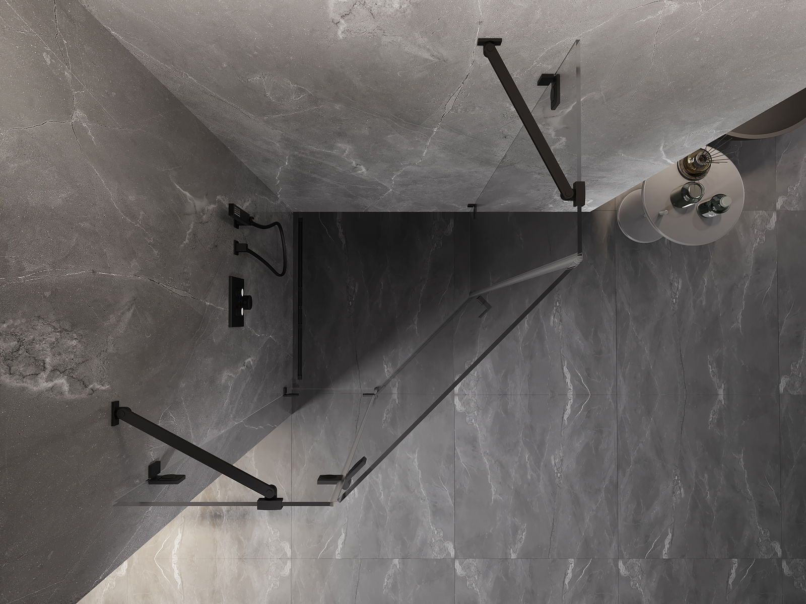 Mexen Lunar cabine de douche pentagonale pivotante gauche 100 x 100 cm, transparente, noire - 831-100L-100P-70-00-L