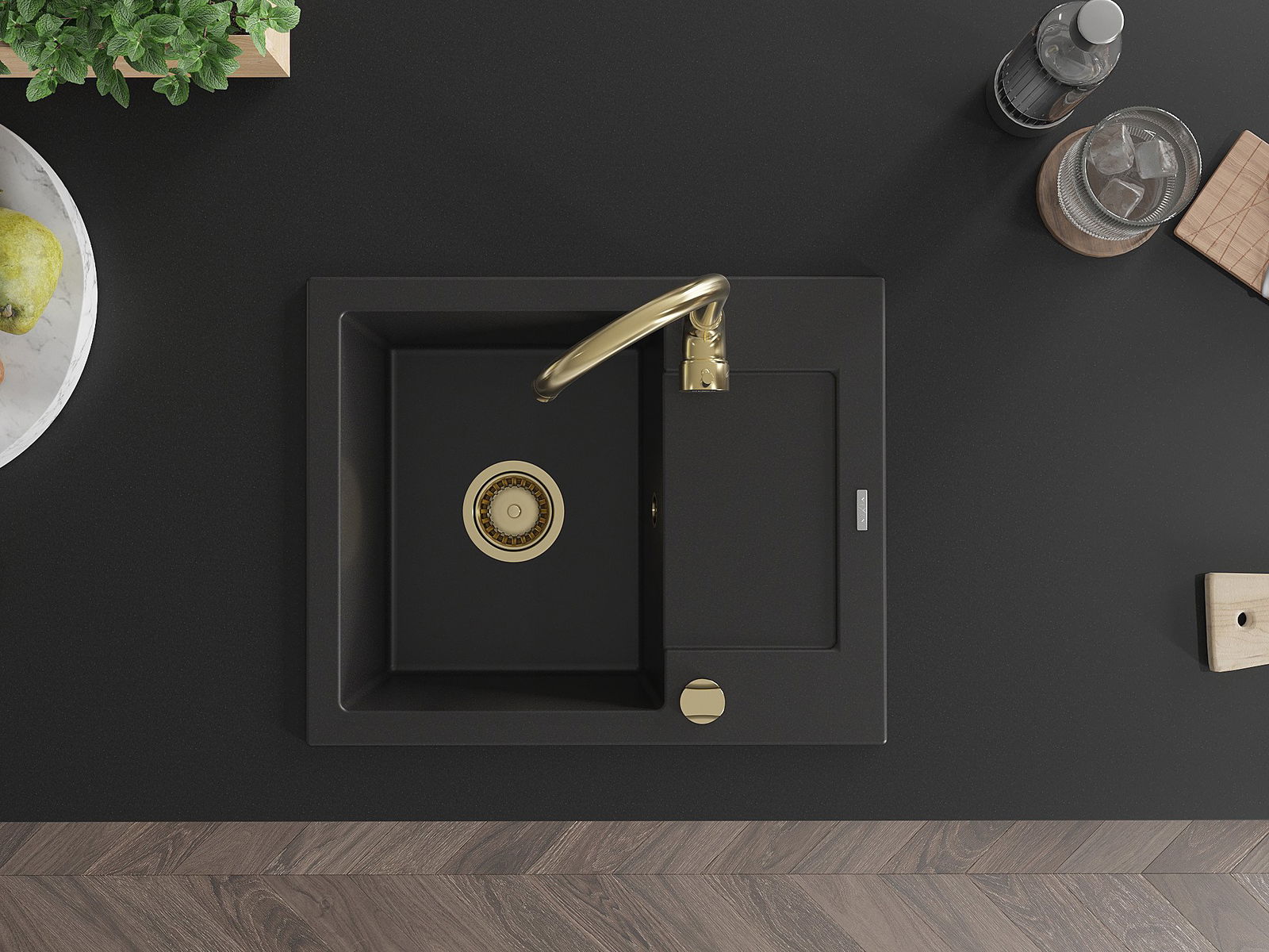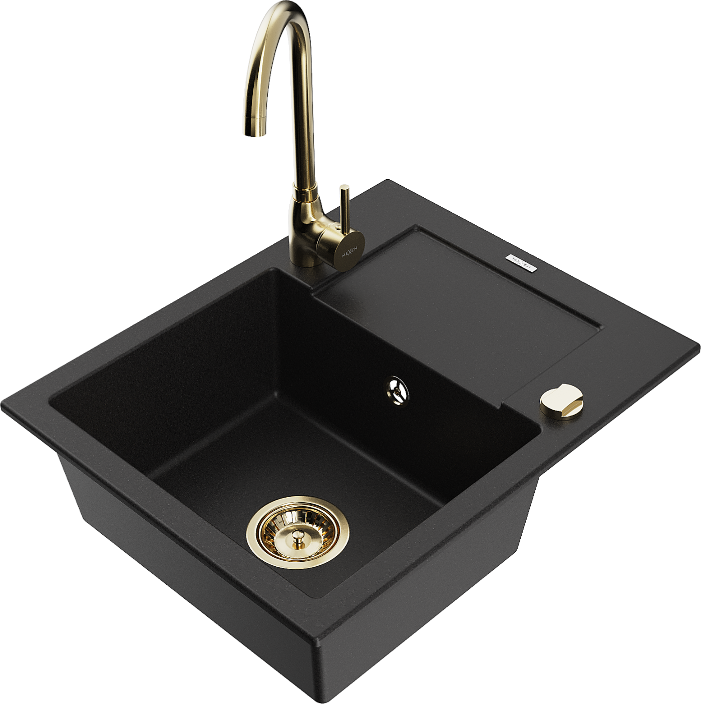 Mexen Enzo évier en granit 1-bac avec égouttoir et robinet de cuisine Telma, noir - 6506-77-670200-50