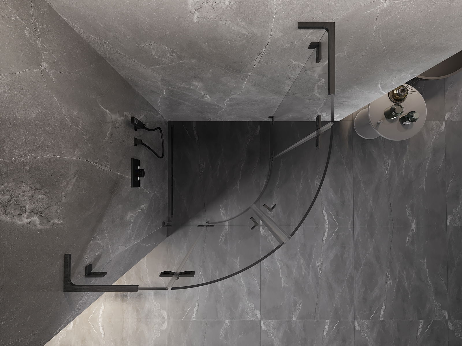 Mexen Lunar L cabine de douche semi-circulaire pivotante 90 x 90 cm, transparent, gris canon brossé - 833L-090L-090P-66-00