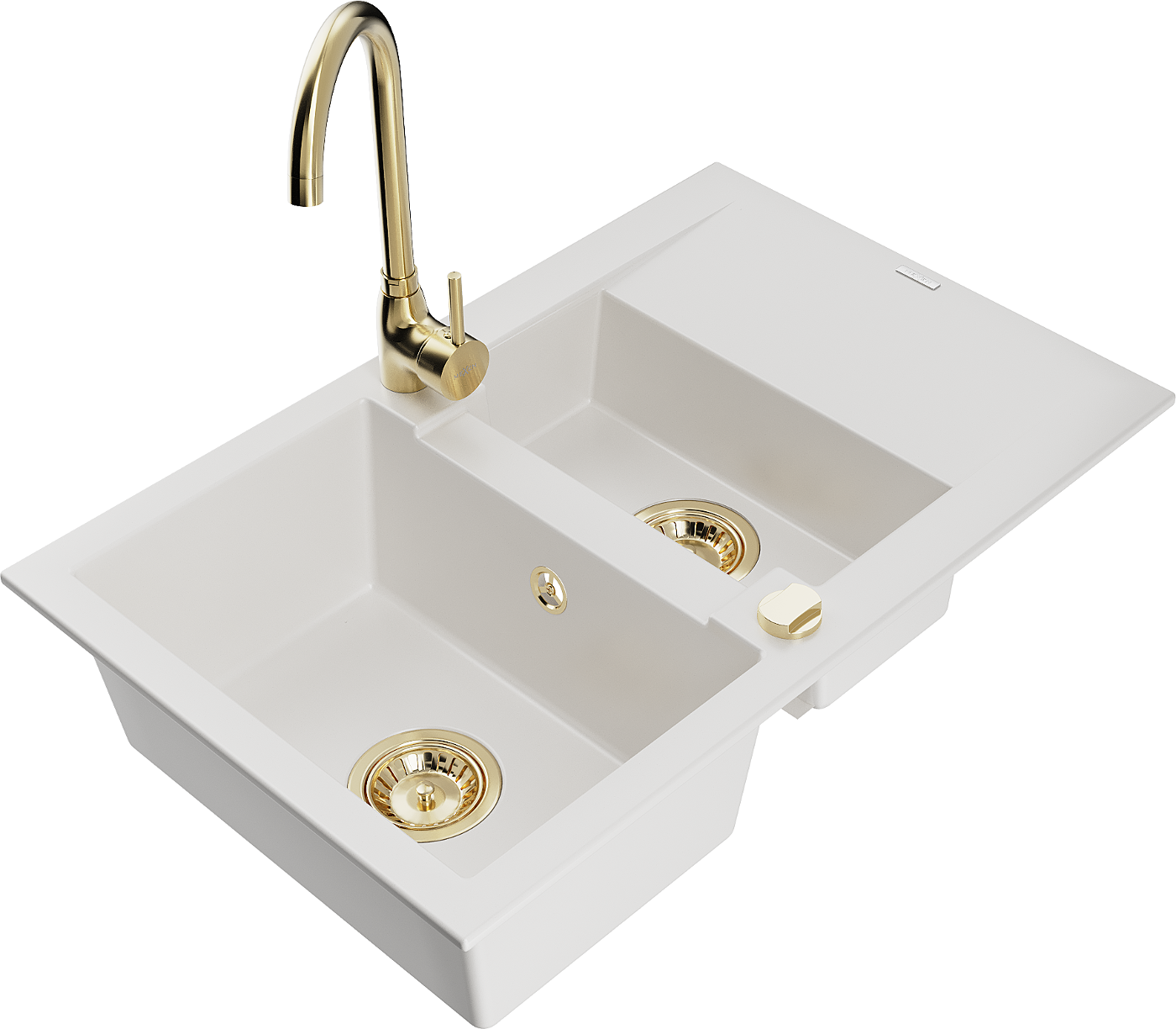 Mexen Gaspar évier en granit 1,5 bac avec égouttoir et mitigeur de cuisine Telma, blanc - 6507-20-670200-50
