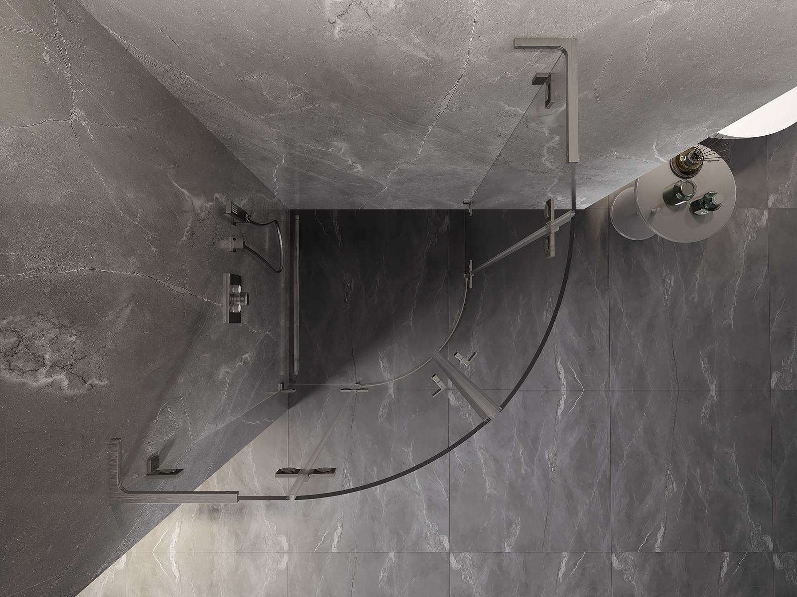 Mexen Lunar L cabine de douche semi-circulaire pivotante 100 x 100 cm, transparente, nickel brossé - 833L-100L-100P-97-00
