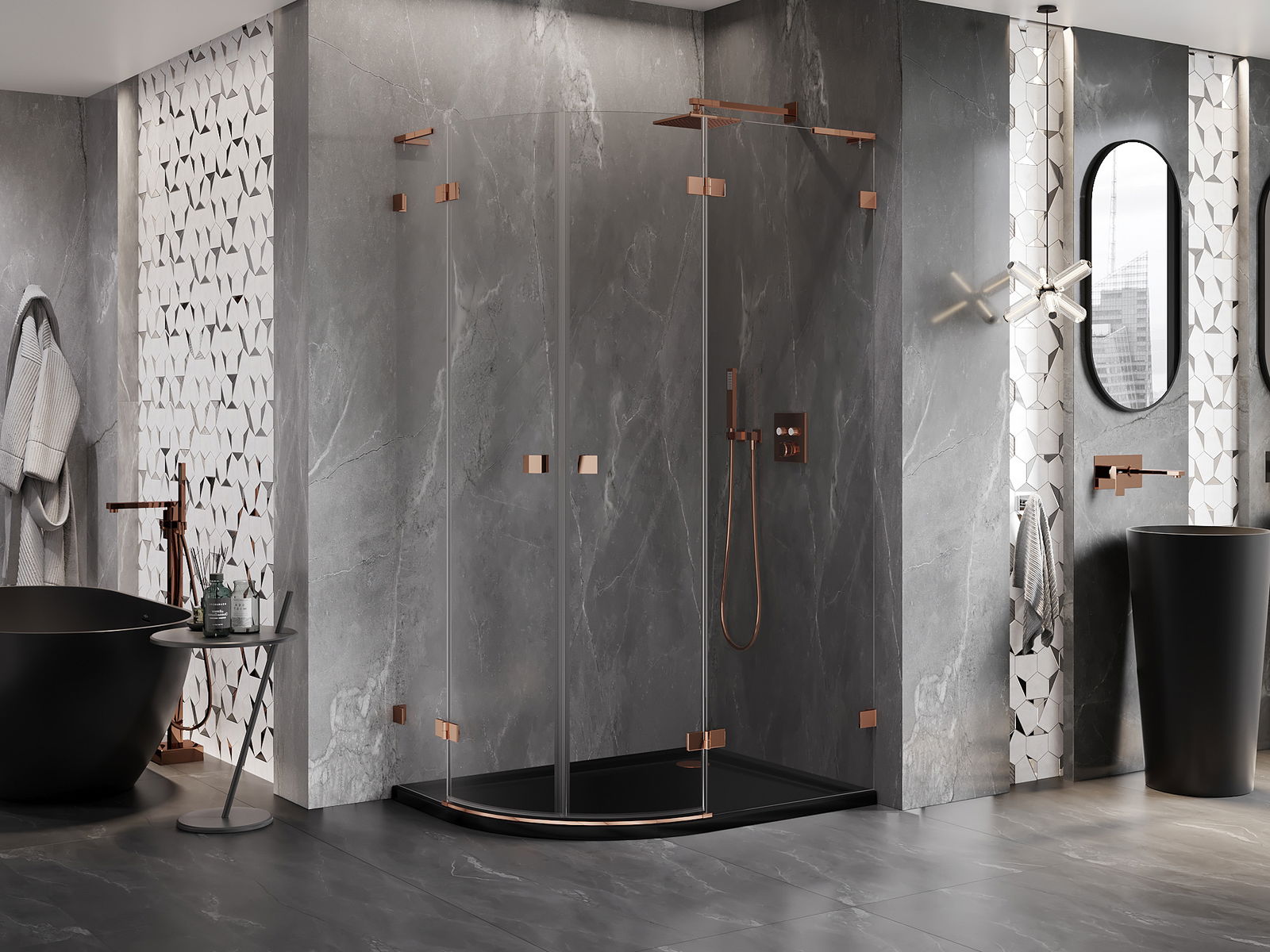 Mexen Lunar L cabine de douche semi-circulaire pivotante droite 90 x 70 cm, transparent, or rose - 833L-090P-070L-60-00