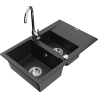 Mexen Gaspar évier en granit 1,5 bac avec égouttoir et mitigeur de cuisine Telma, noir moucheté - 6507-76-670200-00