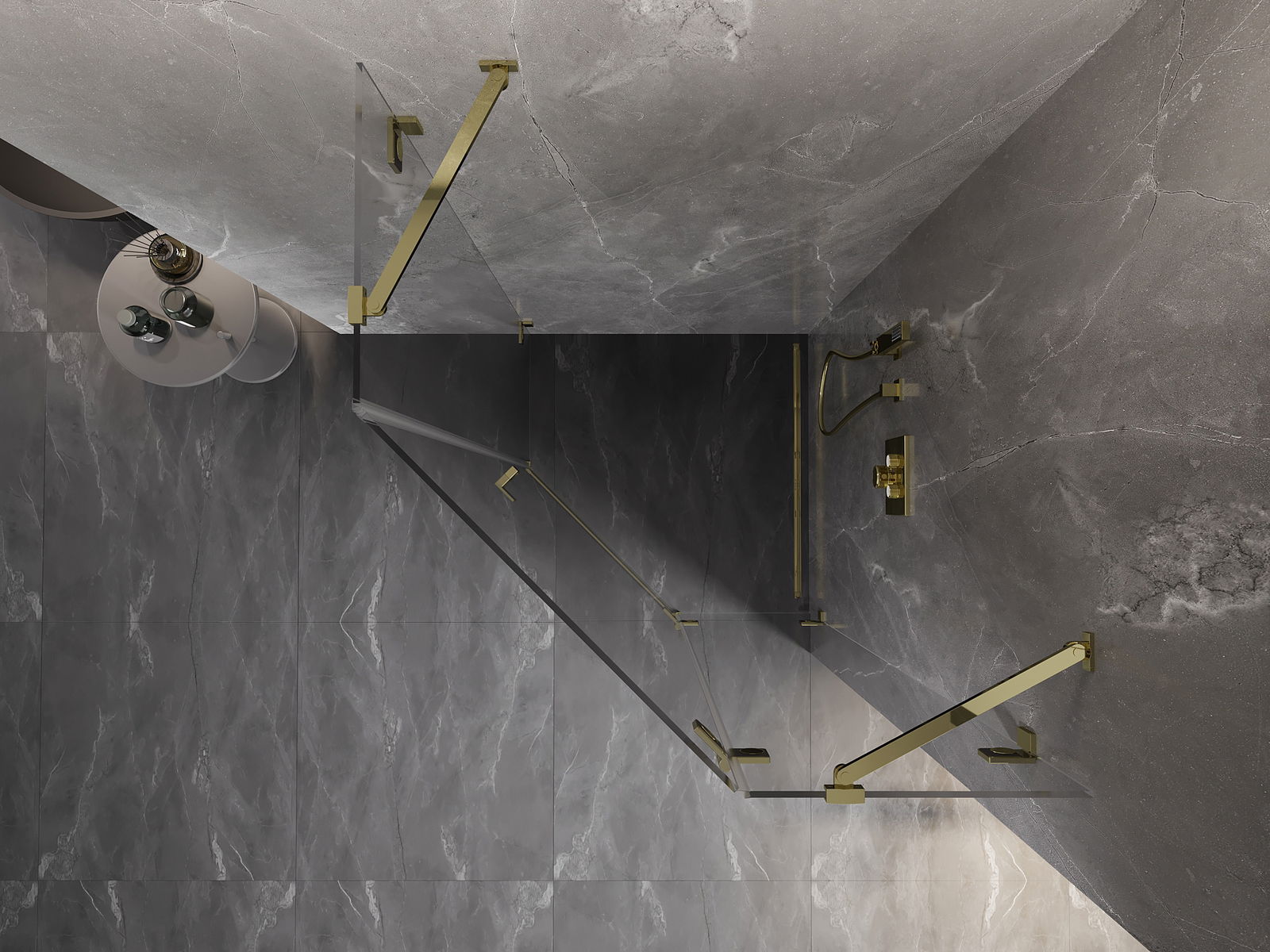 Mexen Lunar cabine de douche pentagonale pivotante droite 90 x 90 cm, transparent, or - 831-090P-090L-50-00-P