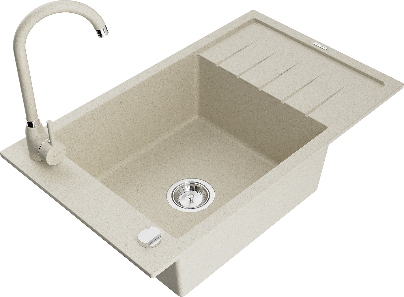 Mexen Elias évier en granit 1 bac avec égouttoir et robinet de cuisine Telma, beige - 6511-69-670200-69