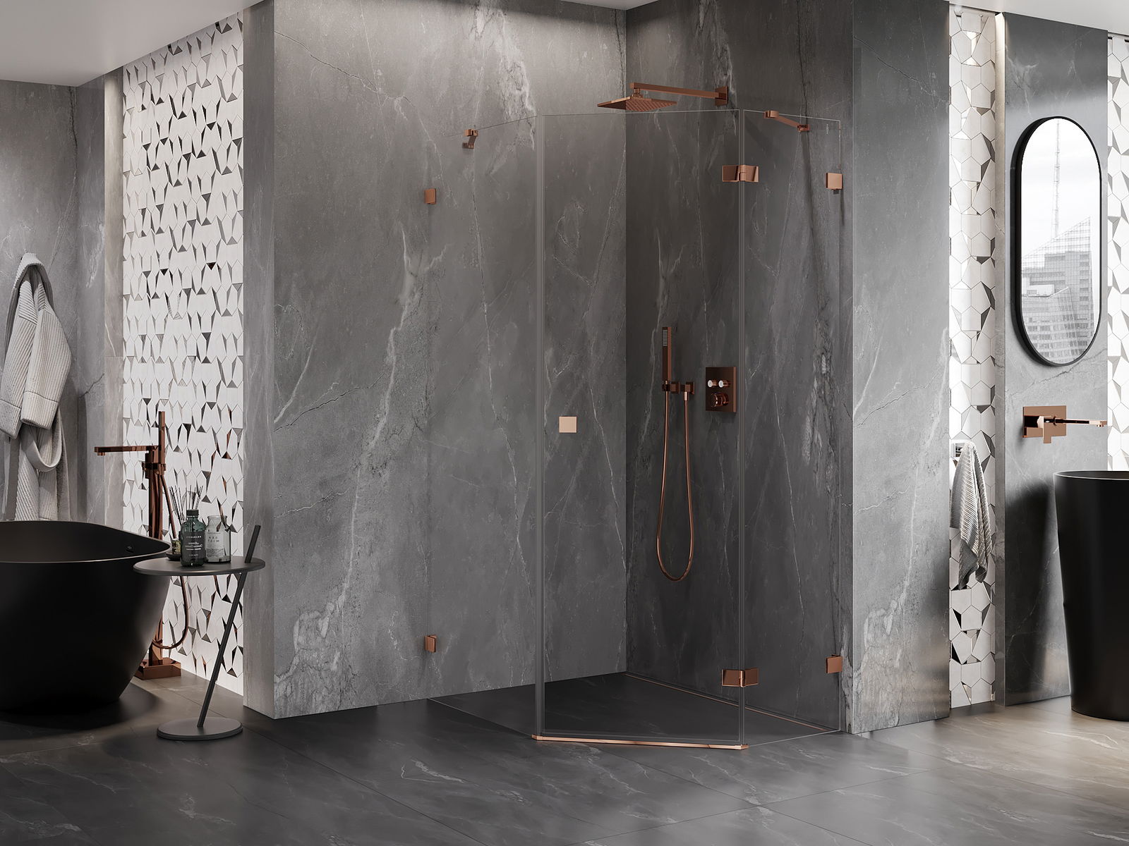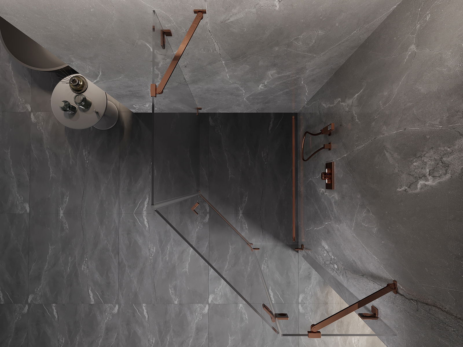 Mexen Lunar cabine de douche pentagonale pivotante droite 80 x 90 cm, transparente, or rose - 831-080P-090L-60-00-P