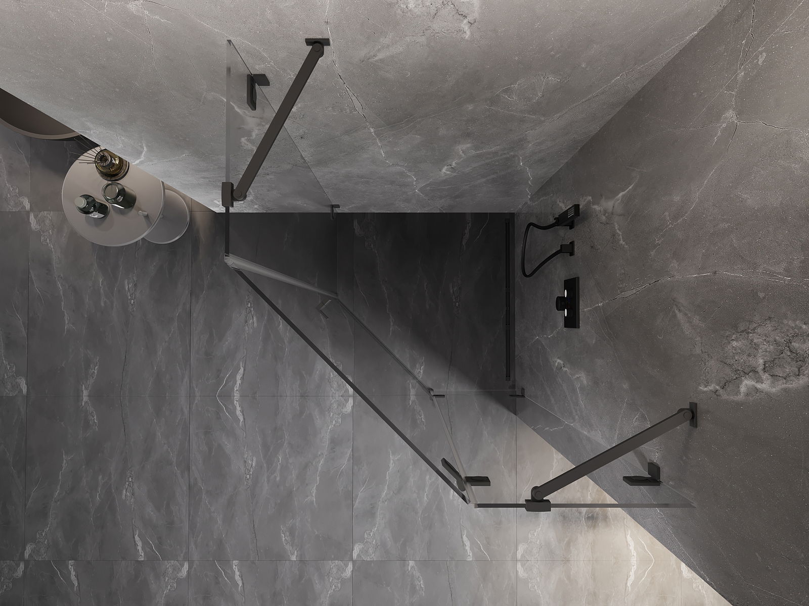 Mexen Lunar cabine de douche pentagonale pivotante droite 80 x 80 cm, transparent, métal noir - 831-080P-080L-95-00-P