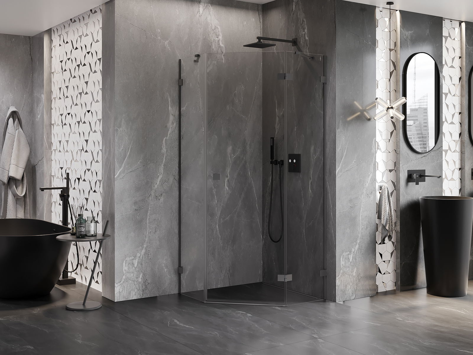 Mexen Lunar cabine de douche pentagonale pivotante droite 90 x 90 cm, transparent, acier canon - 831-090P-090L-95-00-P