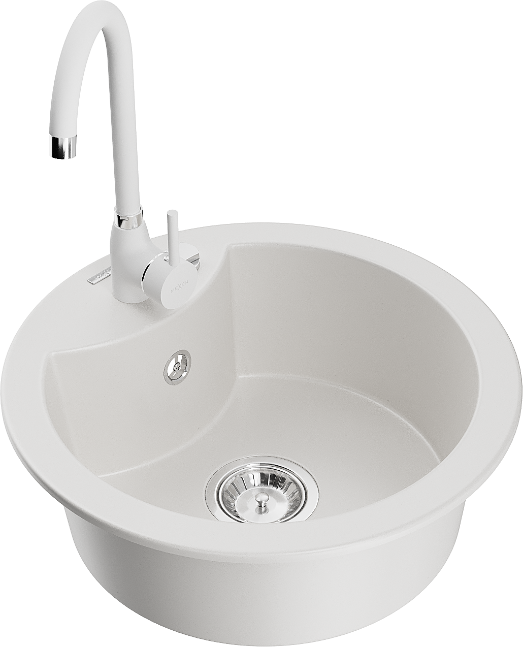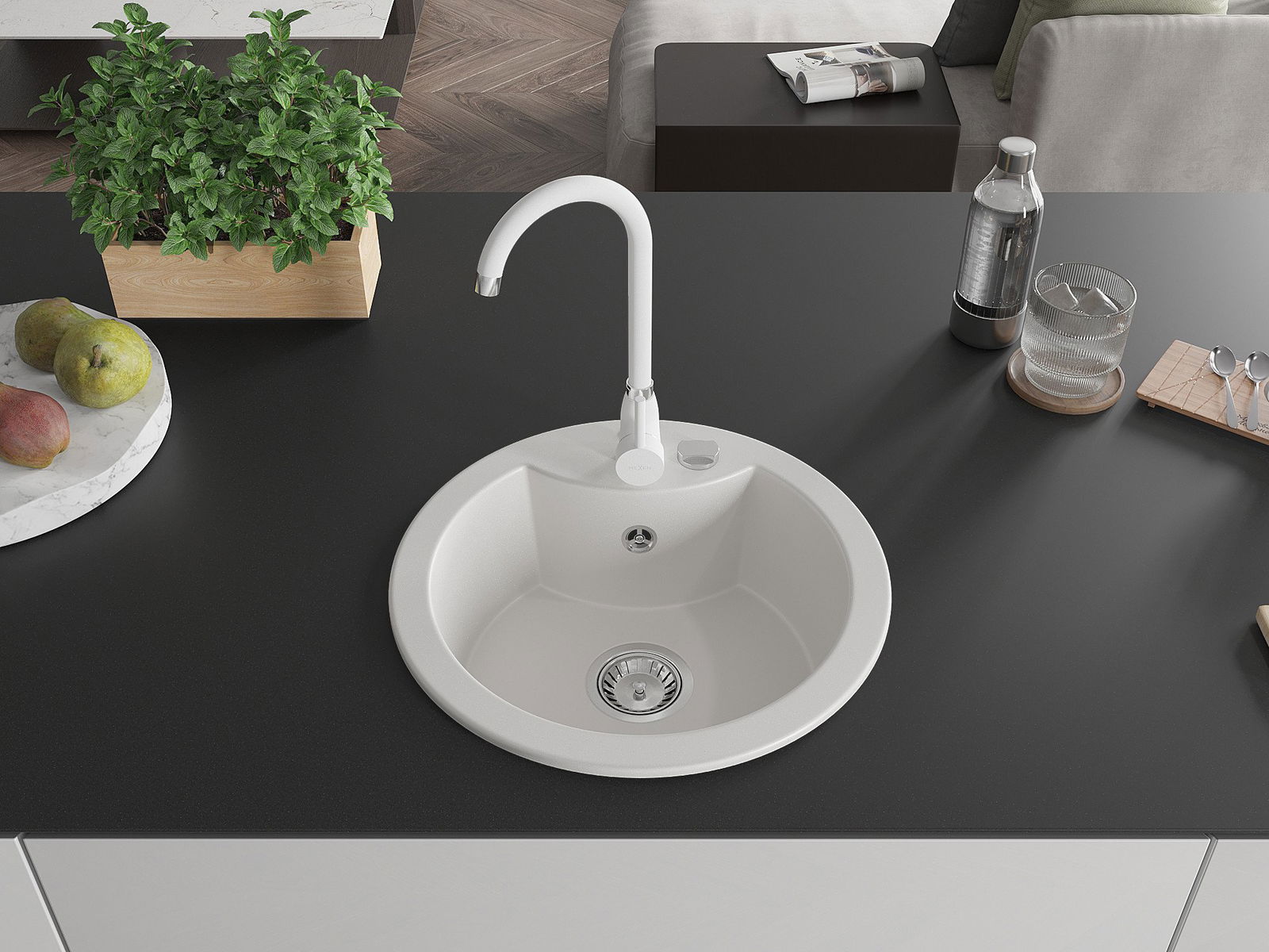 Mexen Diego évier en granit à 1 bac avec robinet de cuisine Telma, blanc - 6512-20-670200-20