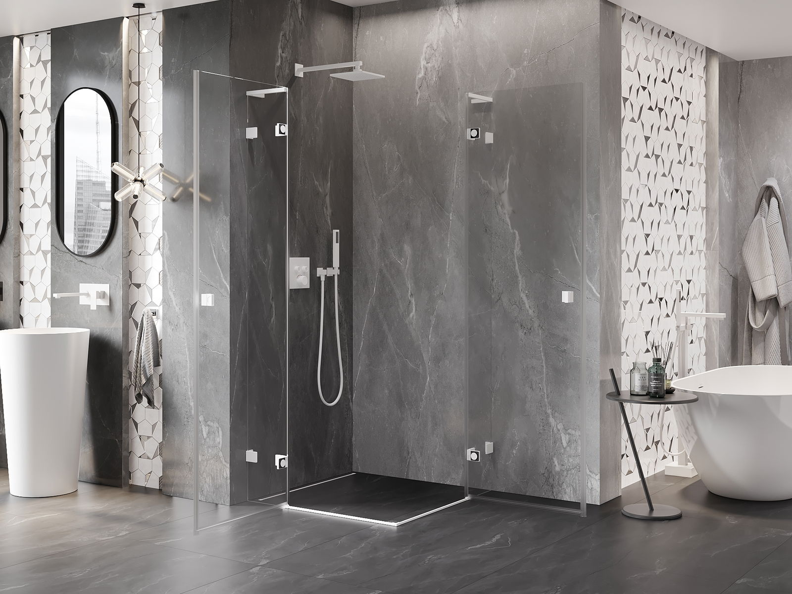 Les pinces et les charnières sont fabriquées en laiton très durable et forment en plus une surface de verre affleurante. C'est un excellent choix qui allie élégance, durabilité et design moderne. Grâce à ces solutions, la douche gagne en esthétique, tout en facilitant le maintien de la propreté.