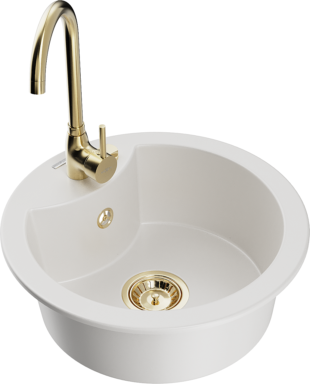 Mexen Diego évier en granit 1 cuve avec robinet de cuisine Telma, blanc - 6512-20-670200-50