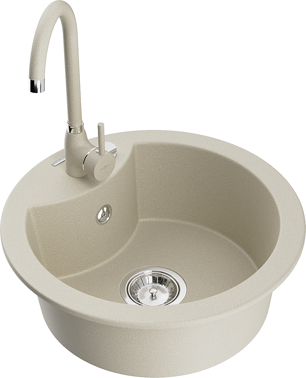 Mexen Diego évier en granit 1 bac avec robinet de cuisine Telma, beige - 6512-69-670200-69