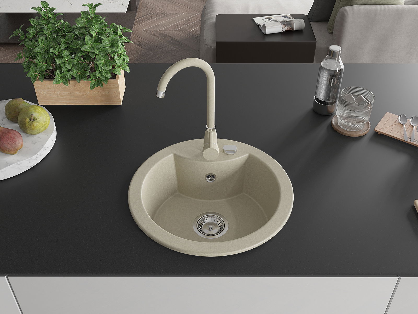 L'évier est fabriqué en granit de haute qualité. Il constitue un complément élégant et surtout pratique pour toute cuisine, quel que soit son style. La qualité et la durabilité du granit garantissent de nombreuses années d'utilisation.