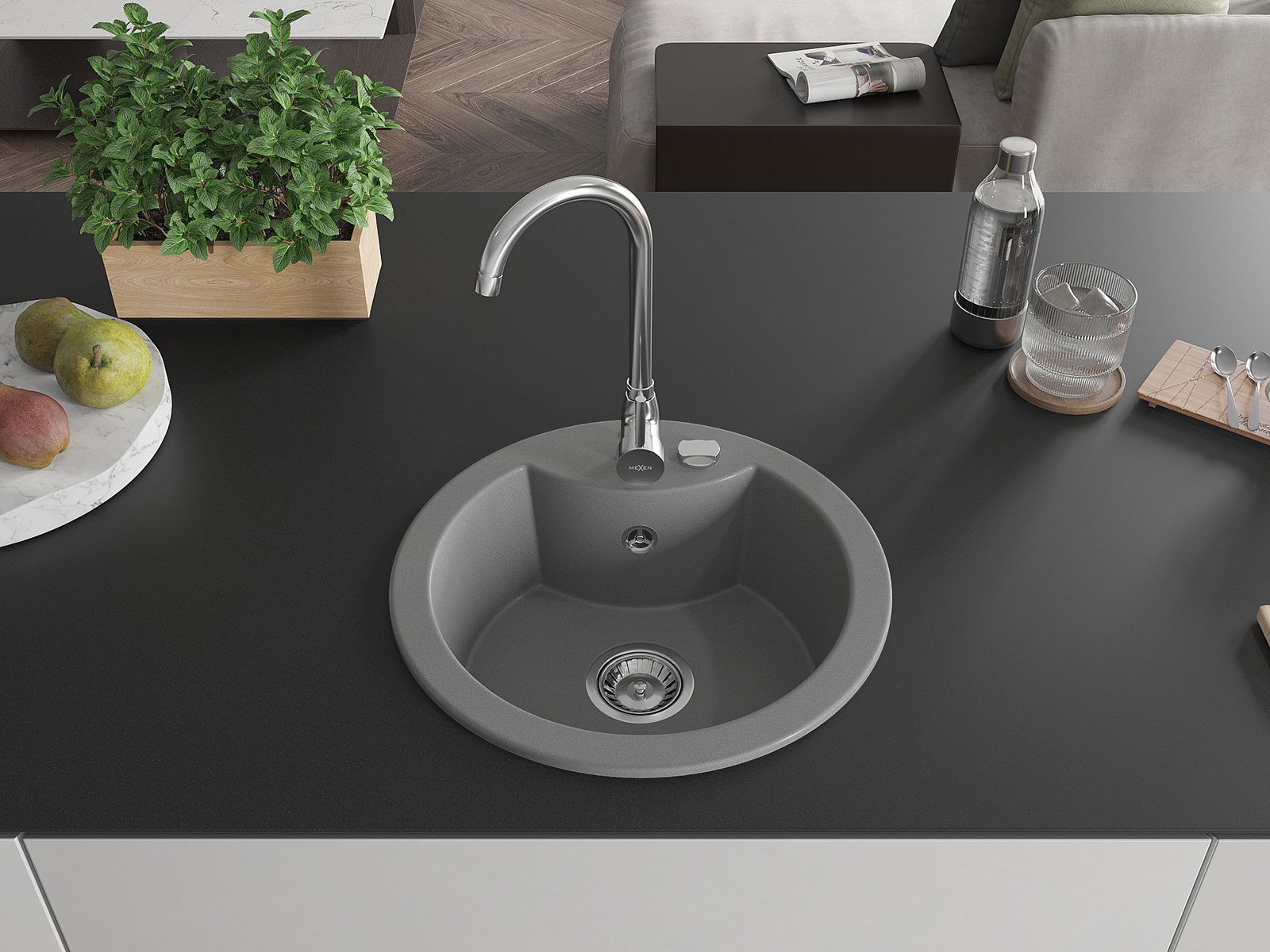 Mexen Diego évier en granit 1 bac avec robinet de cuisine Telma, gris - 6512-71-670200-00