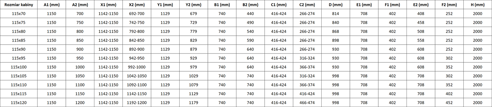 Taille : 115x95 cm (porte gauche 115 cm, porte droite 95 cm)