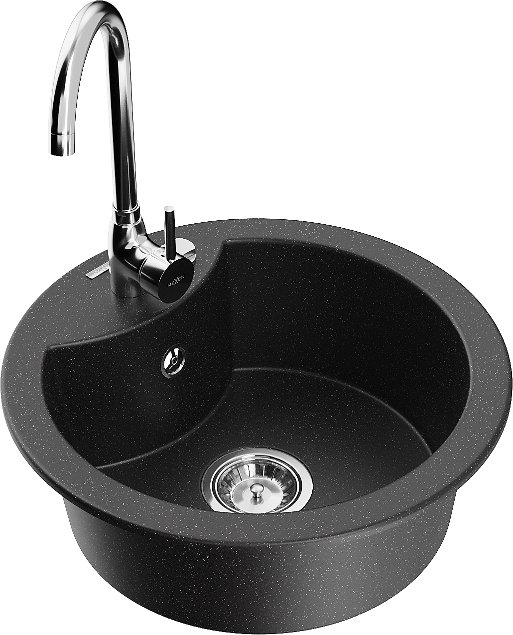 Mexen Diego évier de cuisine en granit 1 bac avec robinet de cuisine Telma, noir/argent - 6512-73-670200-00