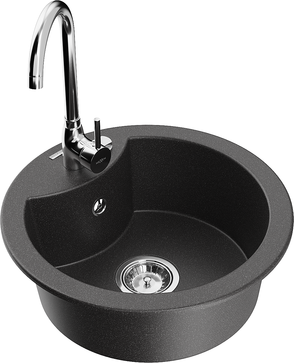 Mexen Diego évier en granit à 1 bac avec mitigeur de cuisine Telma, noir moucheté - 6512-76-670200-00