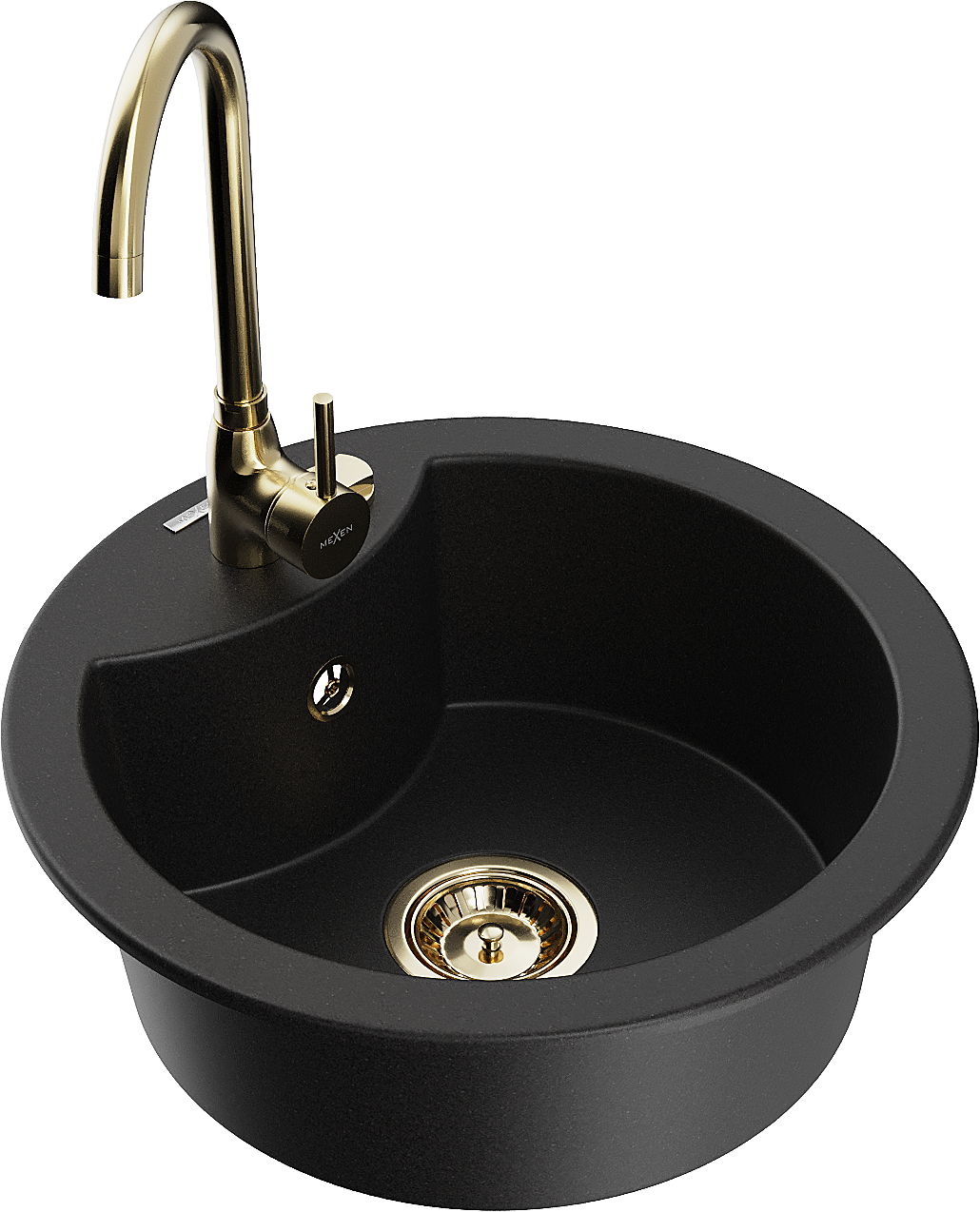 Mexen Diego évier en granit 1 bac avec robinet de cuisine Telma, noir - 6512-77-670200-50