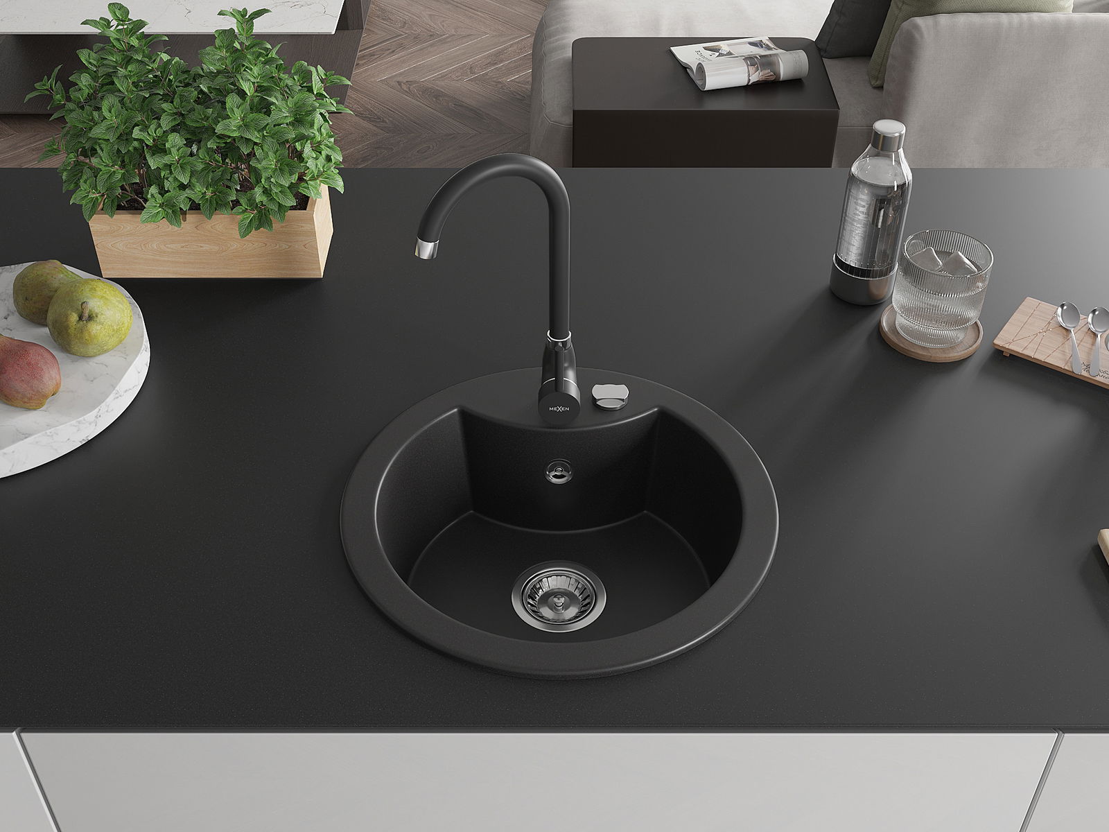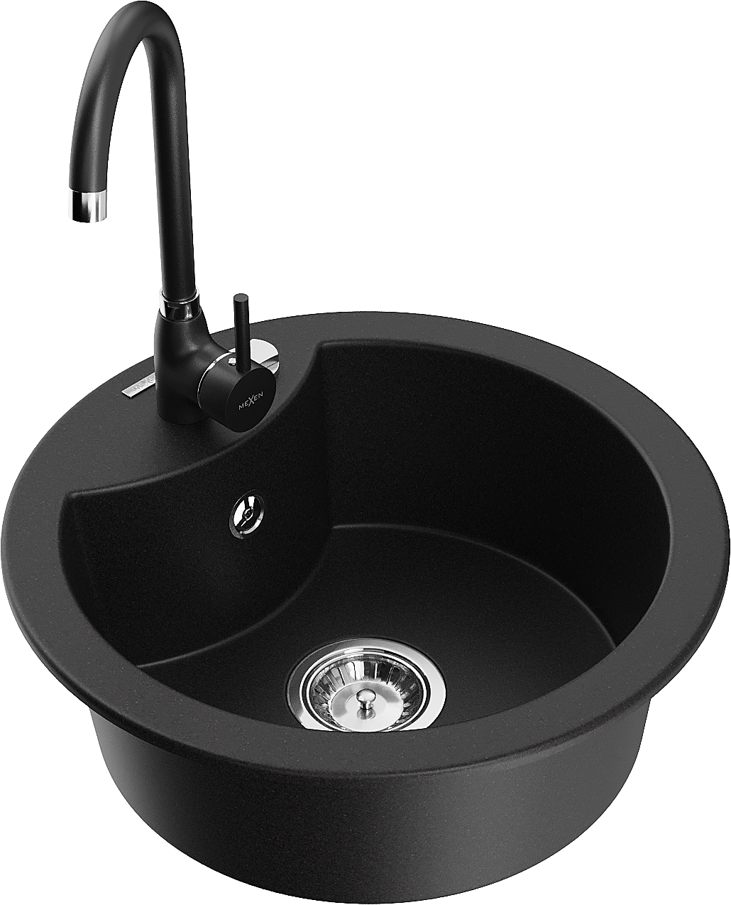 Mexen Diego évier en granit 1 bac avec robinet de cuisine Telma, noir - 6512-77-670200-70