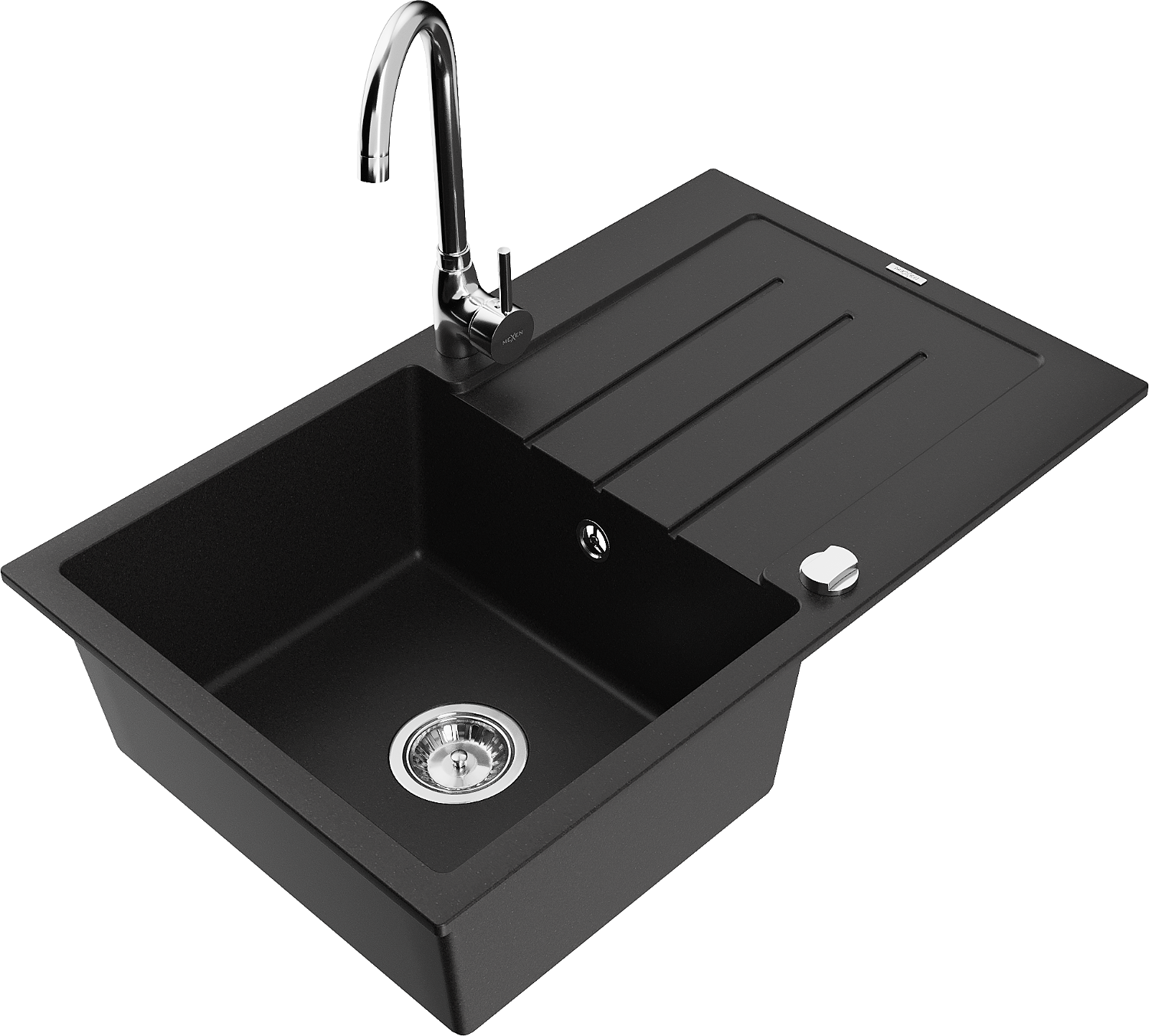 Mexen Bruno évier en granit 1 bac avec égouttoir et mitigeur de cuisine Telma, noir - 6513-77-670200-00