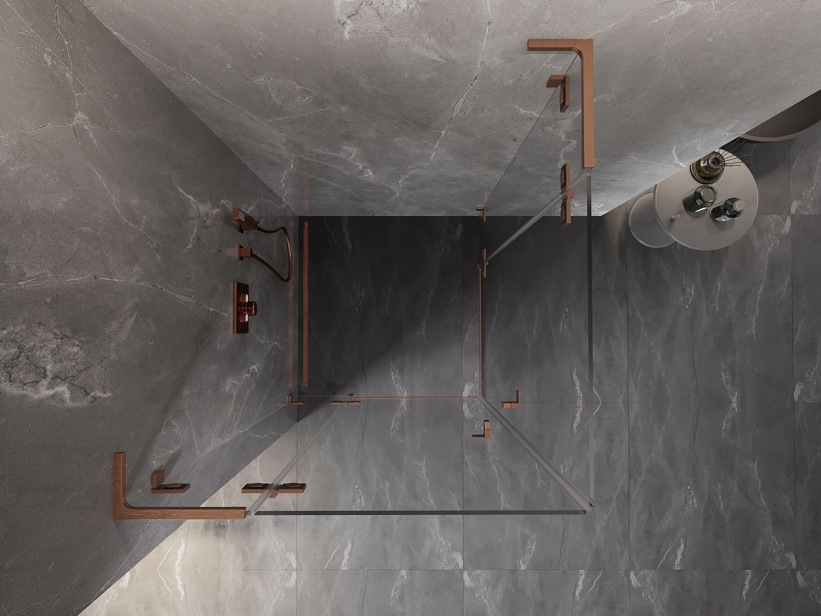 Mexen Lunar L Duo cabine de douche pivotante 90 x 90 cm, transparent, cuivre brossé - 834L-090L-090P-65-00
