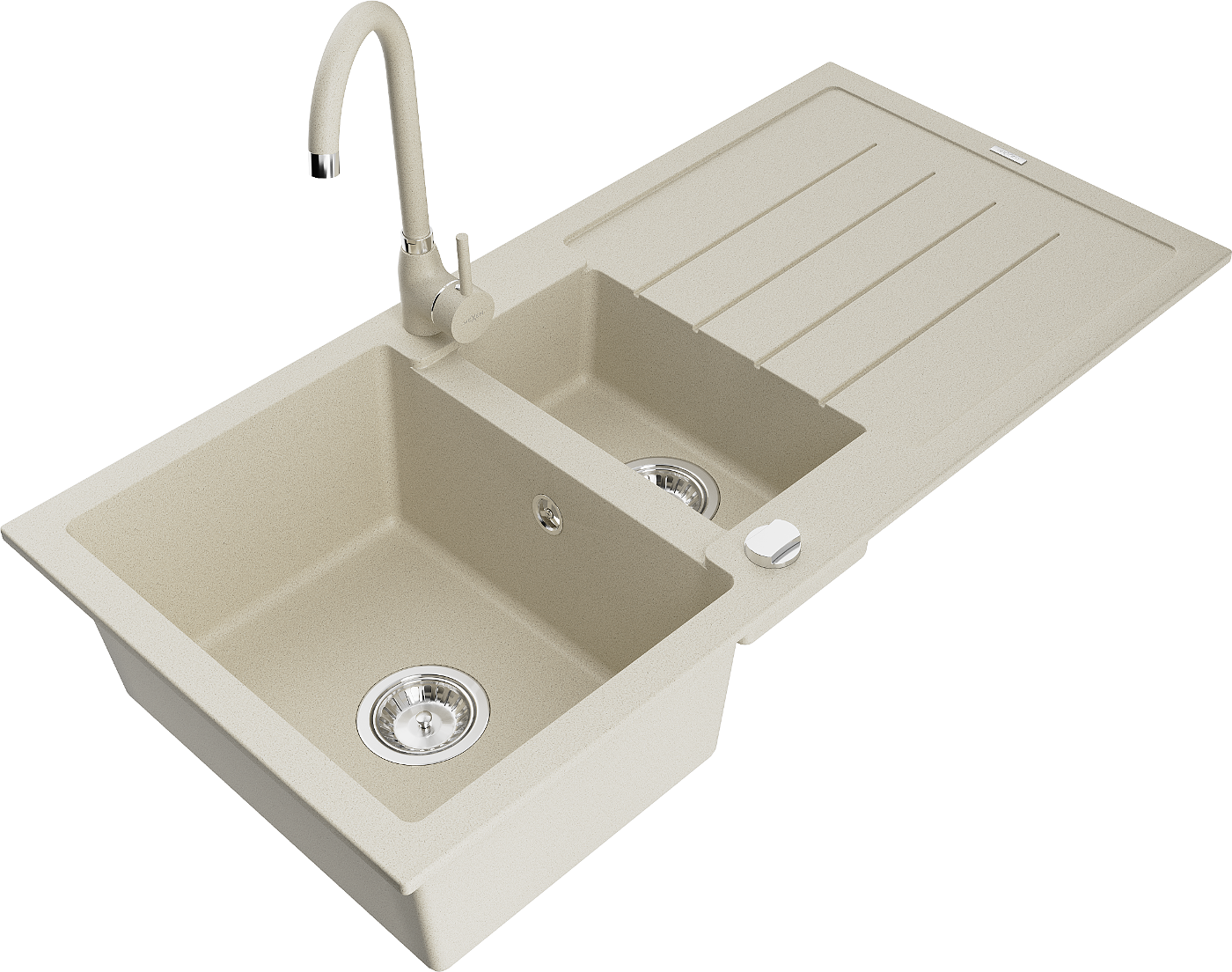 Mexen Andres évier en granit 1,5 cuves avec égouttoir et robinet de cuisine Telma, beige - 6515-69-670200-69