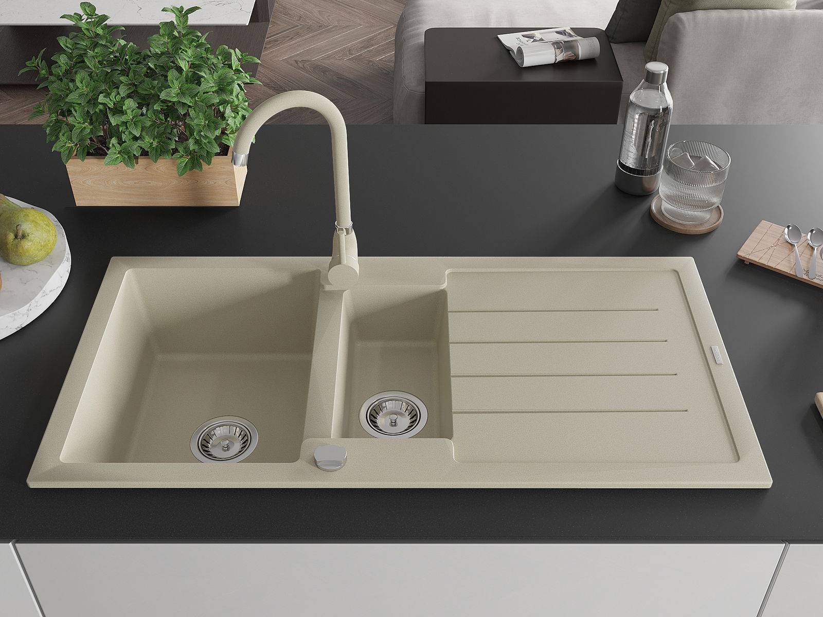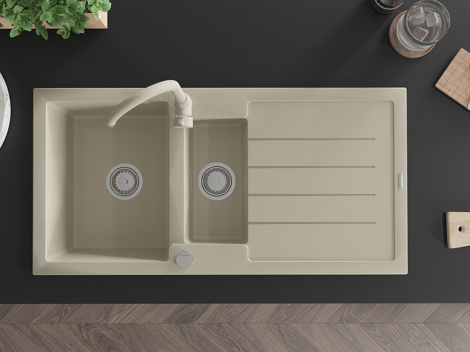 L'évier est fabriqué en granit de haute qualité. Il constitue un complément élégant et surtout pratique pour toute cuisine, quel que soit son style. La qualité et la durabilité du granit garantissent de nombreuses années d'utilisation.